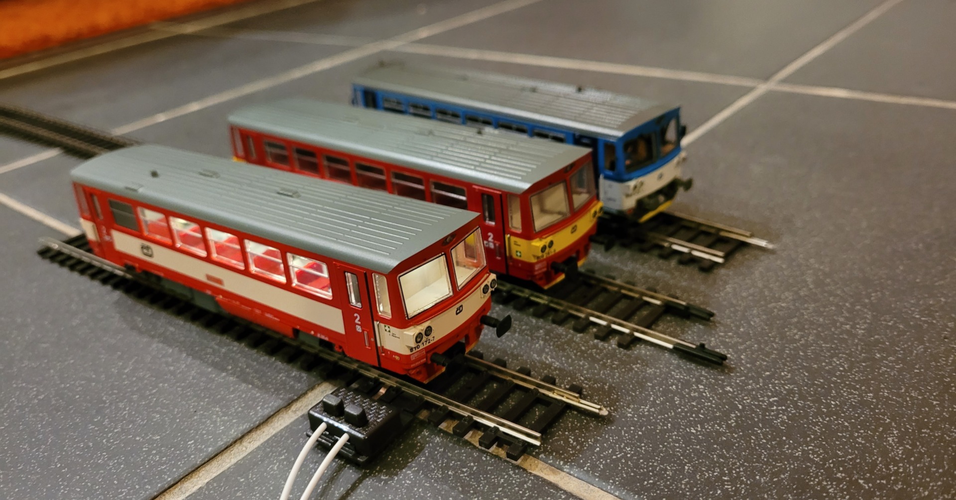 Představa je 2 úvraťové stanice, jedna s výtopnou (Ledečko?) a druhá pouze s výhybnou, aby mezi nimi mohli pendlovat právě vozy 810. Krajina pozdní léto.