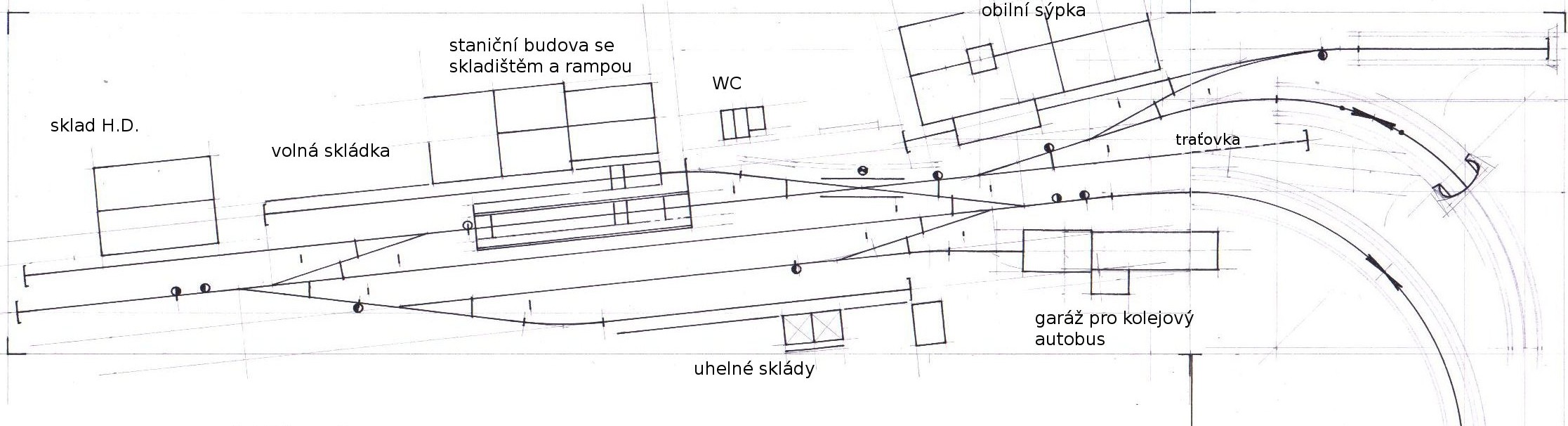 Plánováno na rozměru 260x185. Je to kresleno v geometrii tillg 15°. Motiv Odbočka a Koncová stanice.