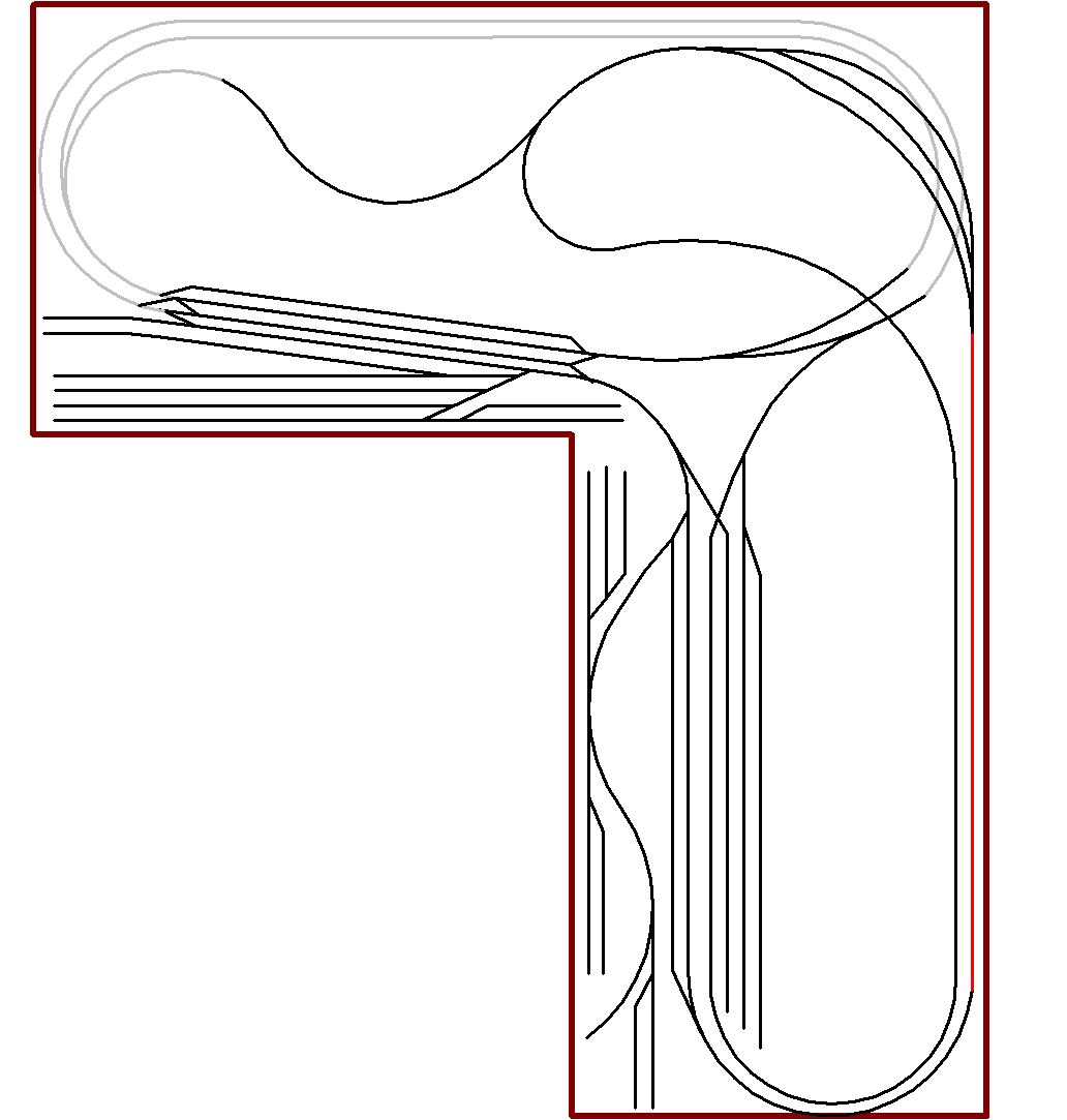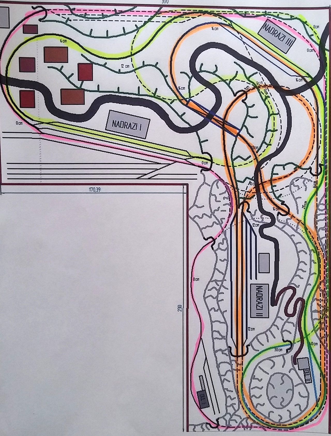 Původní plán byl jednodušší a možná i docela elegantní na to že vznikl v mých 12 letech. Akorát má trošku nepochopitelné dva okruhy "z nádraží do nádraží". No musel jsem ho ted celý předělat, koncepčně ale zůstal stejný, jen tam přibilo hooodně vychytávek - bude konečně pořádně kde jezdit.