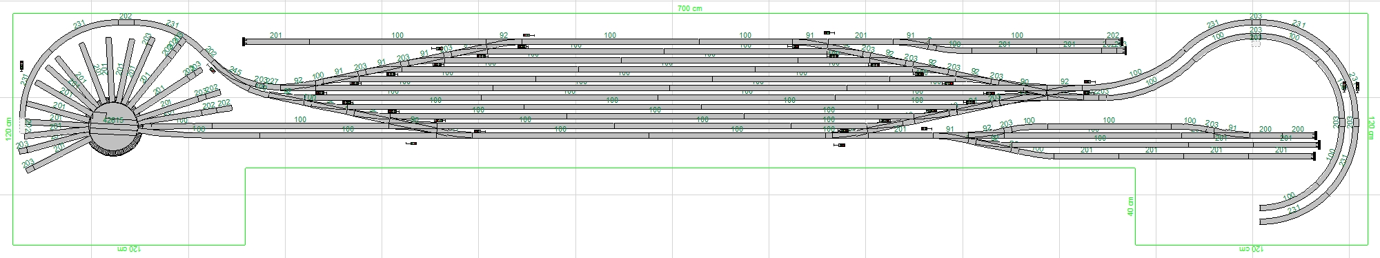 předkládám návrh domácího segmentového kolejiště v H0 o rozměrech 120 x 700cm. Potřeboval bych i další názory a postřehy.