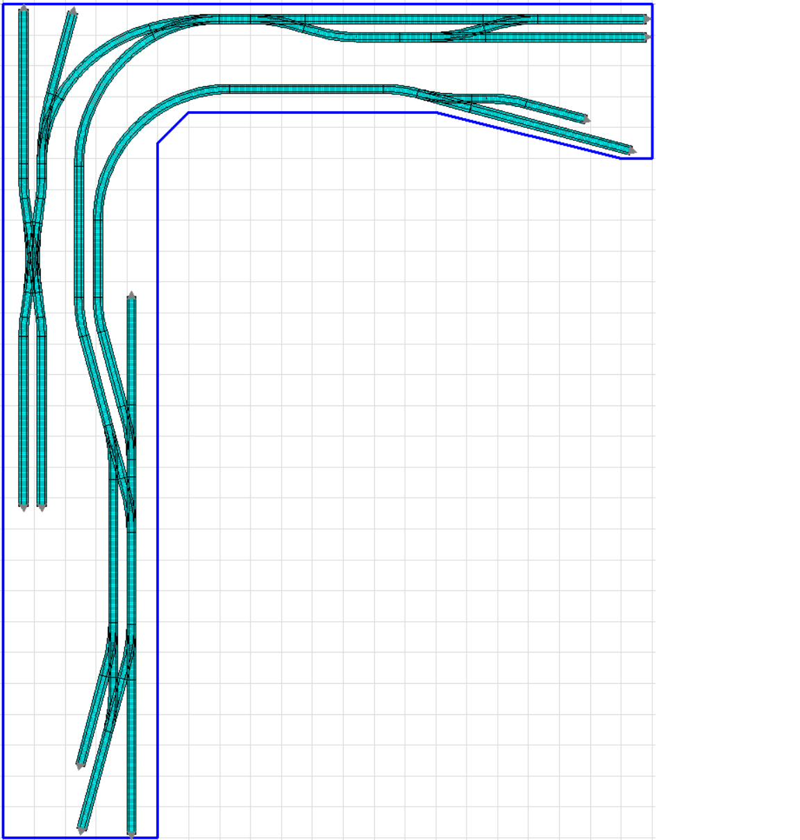 připravil jsem si pro své prostorové možnosti návrh kolejiště H0 ve tvaru L s rozměry 2700/500 x 2100/350. Bude se jednat (mimo zkušební ovál pro otestování základních postupů a digitálního ovládání) o stavbu prvního kolejiště, proto jsem zvolil návrh v jedné rovině. Návrh kolejiště je inspirovaný panem Milanem Ferdiánem a je kombinací jeho dvou návrhů (Peréš a Bohunice z knihy Plány kolejišť IV). Plán ze SCARM přikládám. Část kolejiště bude skrytá (levá část nahoře a pravá část nahoře).