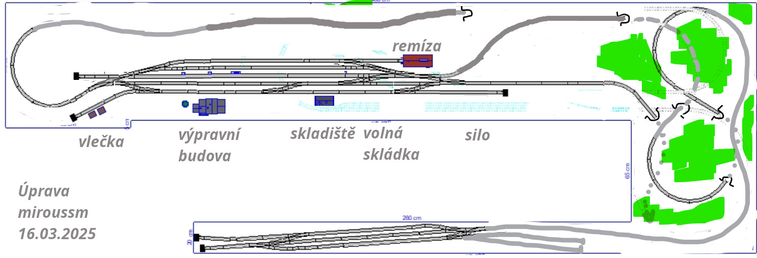 Vy mi kluci dáváte :D. To jsem v podstatě u toho prapůvodního návhu. Každopádně minimálně zalomení do L tam chci. Už jen proto, abych tam nějak logicky vměstnal druhou stanici a nejak rozumně. No první krok bude, že si opravdu pomocí stolu nasimuluju rozvržení v prostoru. Jinak co se složitosti týká, mně to nepříjde právě tak moc složité ty návrhy. Celkem jednoduché stanice, žádná dvoukolejka, minimum mostů a tunelů.