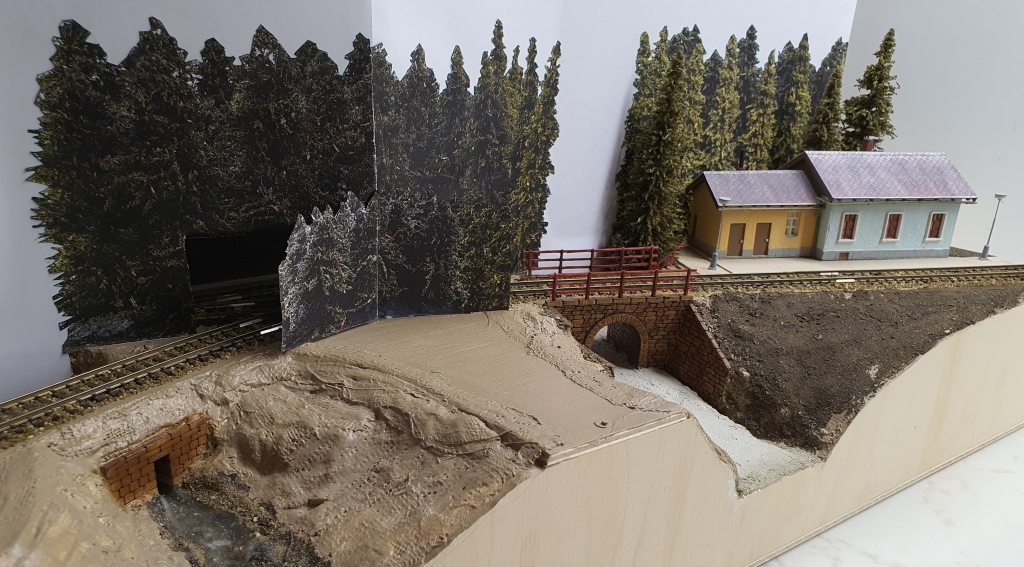Ahoj mam otazecku. Chci nechat udelat pozadi Sudomericke strany, ktere bude do U pokryvat i stranu Bechynske zastavky a vykusu Taborskych mostu, ale furt si nejsem jisty resenim, zatim mam 3 varianty. Na odbocce Dolina v 17,53 zacina klesani a tam je kamen urazu, bud udelam pozadi rozdelene na 2 casti kde bude na odbocce pozadi primo na zdi a v Sudo zacne dalsi odsazene 6cm od zdi aby zakrylo klesani, ale ta dira az ke stropu se mi nelibi. A pak dve varianty bud zlomu pozadi do praveho uhlu s vyriznutim prujezdu pro soupravy a nebo jen bude prilepene v lehkem sklonu aby zlomy videt nebyli ale vyrizly prukezd tim padem bude delsi.