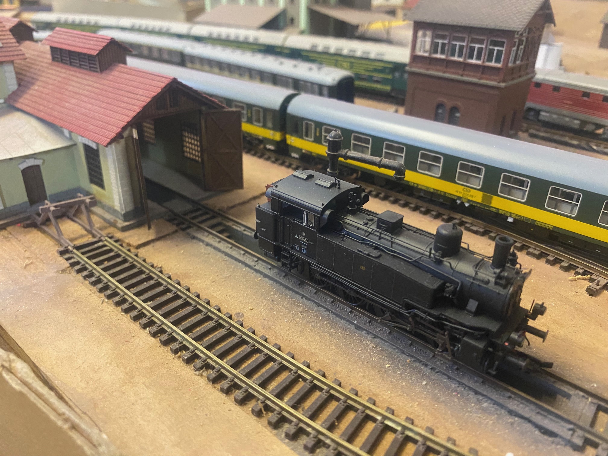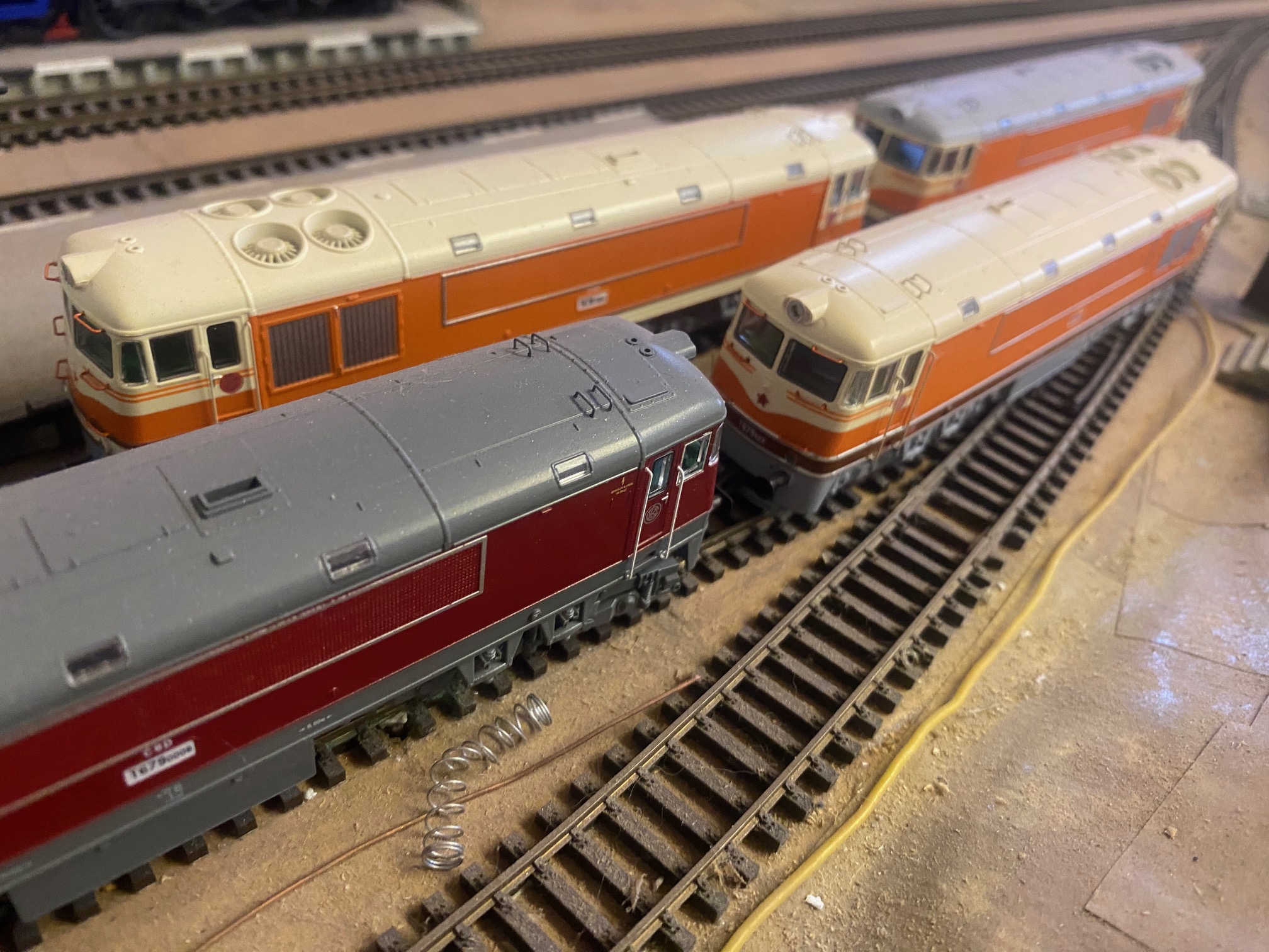 Nevím proč, ale tahle lokomotiva se mi vždy tvarem čela a zvláštně lomenými skly líbila, měl jsem jí v modré verzi jako malý kluk spolu s E44 v H0. Mám i její modrou verzi jako nějakou limitní skládačku, co kdysi byla a podařilo se mi to náhodou u nás zapadlé náhodou koupit. Když ještě nebyla v TT, upravoval jsem BTTB verzi z které je udělána na tuto, kdy jsem si sehnal z H0 verze předního okna a ty pokrátil, střechu prodloužil a tak nějak vypadala, ještě ji mám ve vitríně některých modelů nad kolejištěm. Kdysi tato vitriná bývávala určitou prostorovou dominantou obývacího pokoje u rodičů a tehdy to vypadalo moc hezky, dnes když jsou dané na stěnu a rozloženy na dvě části a jen viditelné z jedné strany, již to není ono. V mém mnohem větším životním prostoru se mi to prostě do interiéru tak nehodí a není to o tom, že bych já se musel doma doprošovat, takže skončily u kolejiště přišroubovány na stěně. Tehdy kdokoliv k nám přišel, obdivoval tuhle vitrínu, kolik jsem toho měl, když modely běžně nebyly dostupné. Tuhle na srazu to řešili kamarádi, že nechápali, kde jsem to vše bral a přitom to bylo jednoduché, ti co chodili za holkama a kouřili, potřebovali to z něčeho financovat a já to prostě jen koupil, takže mi to mnozí nabízeli.