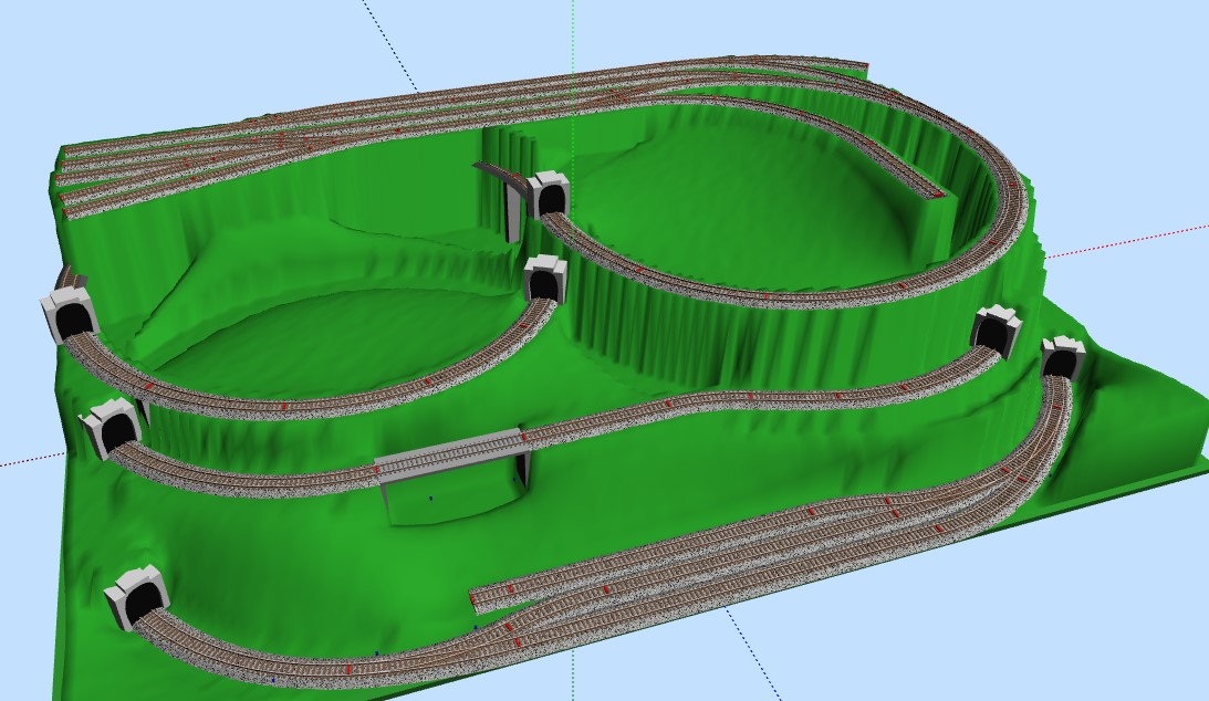 Líbí se mi řešení skrytého nádraží, jehož součástí je i dolní stanice. Jen bych vynechal ten šturc a nacpal tam víc průjezdných kolejí. Dopředu si rozmysli, jak budeš řešit provoz na kolejích, na které nevidíš. Je potřeba vjíždět na kolej, která je volná a mít správně postavenou cestu pro vlak, se kterým plánuješ odjíždět. Je to v provozu těžší, než se může zdát, pokud neplánuješ ovládání přes PC.
