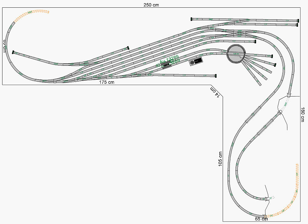 Pokud necháš původní smyčku, bude to škoda, protože "horní" skryťák má využitelnou délku kolejí jen ~40 cm, kdežto ve stanici jsou koleje dlouhé 100 cm. Zkusím to ještě nějak zjednodušit.