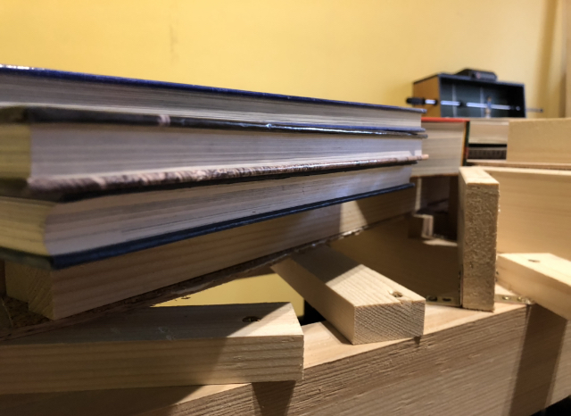 nó, pod knihama jsou dřevěné hranoly na šířku korku a teprvajc na nich leží knihy (když ona beletrie je lehká a kupodivu nejtěžší knihy jsou tyto, čemuž se není co divit, páč třeba Sergej váží nějakých stošestnáct tun ;-) )