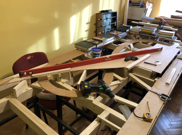 Pěkný postup. Nebudou se ti špatně připevňovat koleje pod tím nádražím? Jo a to kdyby jsi měl digitální vodováhu, tam bys viděl ta stoupání i v procentech. ;)