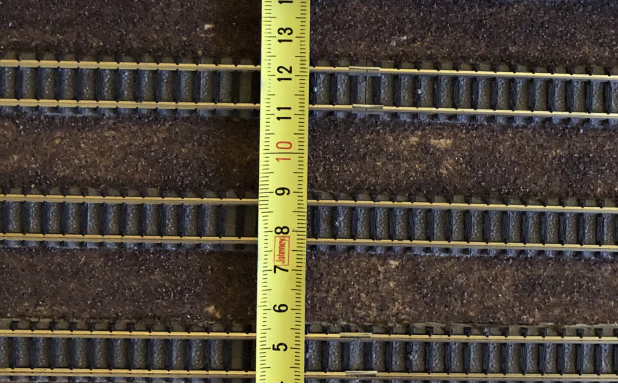 To jsem se právě ptal někde dozadu, páč podle norem bych měl být blíž. Podle Fleischmanna vychází u kolejiva Picolo Profi osová vzdálenost 33,6 mm a tudíž mezera mezi kolejemi (podložím) 18 mm (viz. foto dole - původní panel z normovaného profi kolejiva)