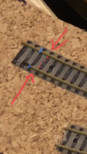 ..akorát dotaz na zkušené: Jak napojovat flexi koleje? Uříznout podloží těsně u prvního pražce za přesahem kolejí (vyznačeno červeně), zkrátit delší kolej podle kratší (modrá), spojit spojkami další kolej a dodatečně “zaštěrkovat”?