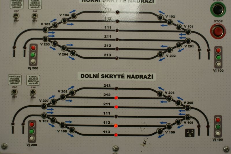 zapojení indikace obsazených kolejí ve skrýtých nádraží a jejich zapojení na ovládací panel