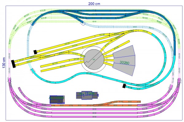 Chápu snahu napasovat stanici dopředu, ale co potoim s tou velkou "růžovou" stanicí vpředu, co ji kapánek zmenšit, případně otočit naspoň zčásti ke kratší straně, zadek (vrchní část obrázku) kolejiště použít pro stoupání a uvolněné místo využít pro regulární koncovou stanici. Zatím mi ten plánek připadá jako vlakodrom z DDR. No dobře, když mi bylo 12 taky mě uchvacovaly:D .