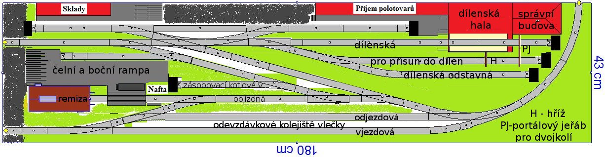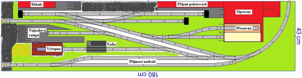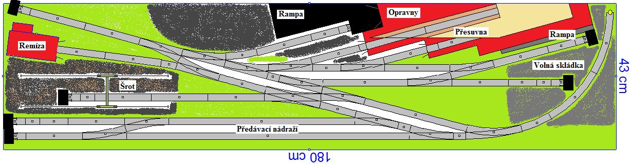 Ahoj, podívej se na to Ryko Děčín. Stačí jenom z mapy, ale i najejich stránkách jsou fotky. Přesuvna je před halou a odstavné koleje naproti tomu. Udělal bych tři průjezdné koleje a z toho tu přesuvnu a nějaký šturc a remízu. Jo buď rosnička nebo malé lego popř. hektor nebo bangle.