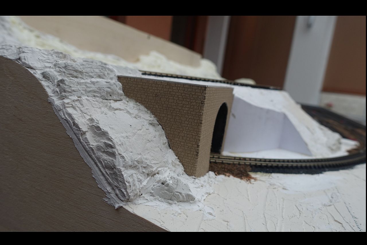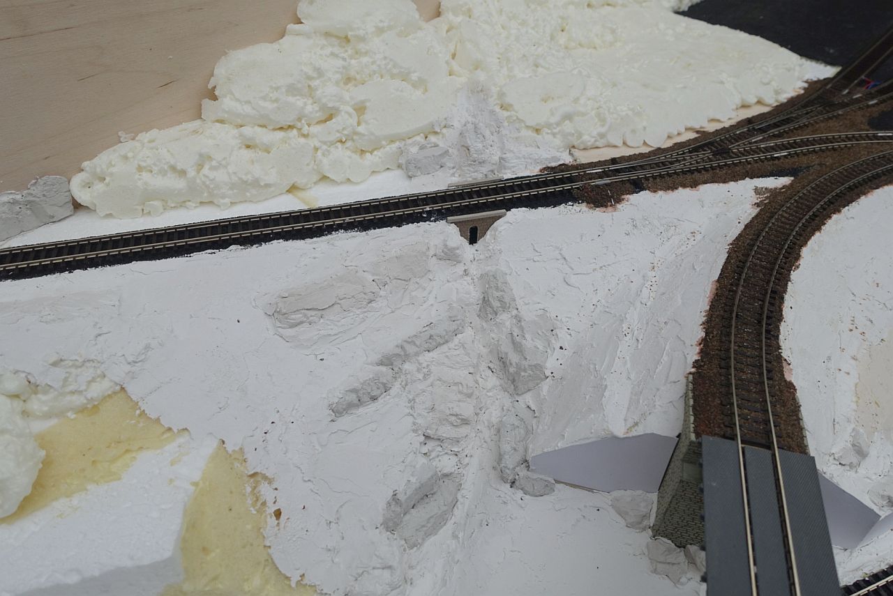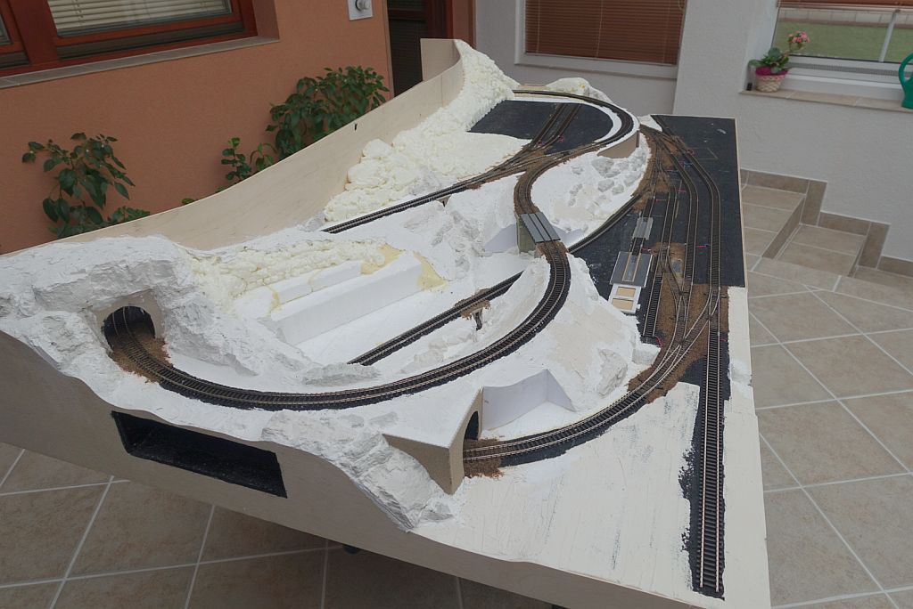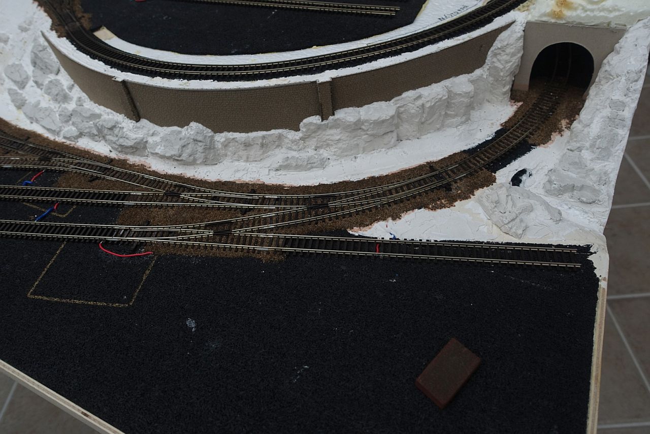 Velmi výhodné je před započetím sádrování skal nalepit opěrné zdi a portály (pravda, ne všude se mi to povedlo dodržet).