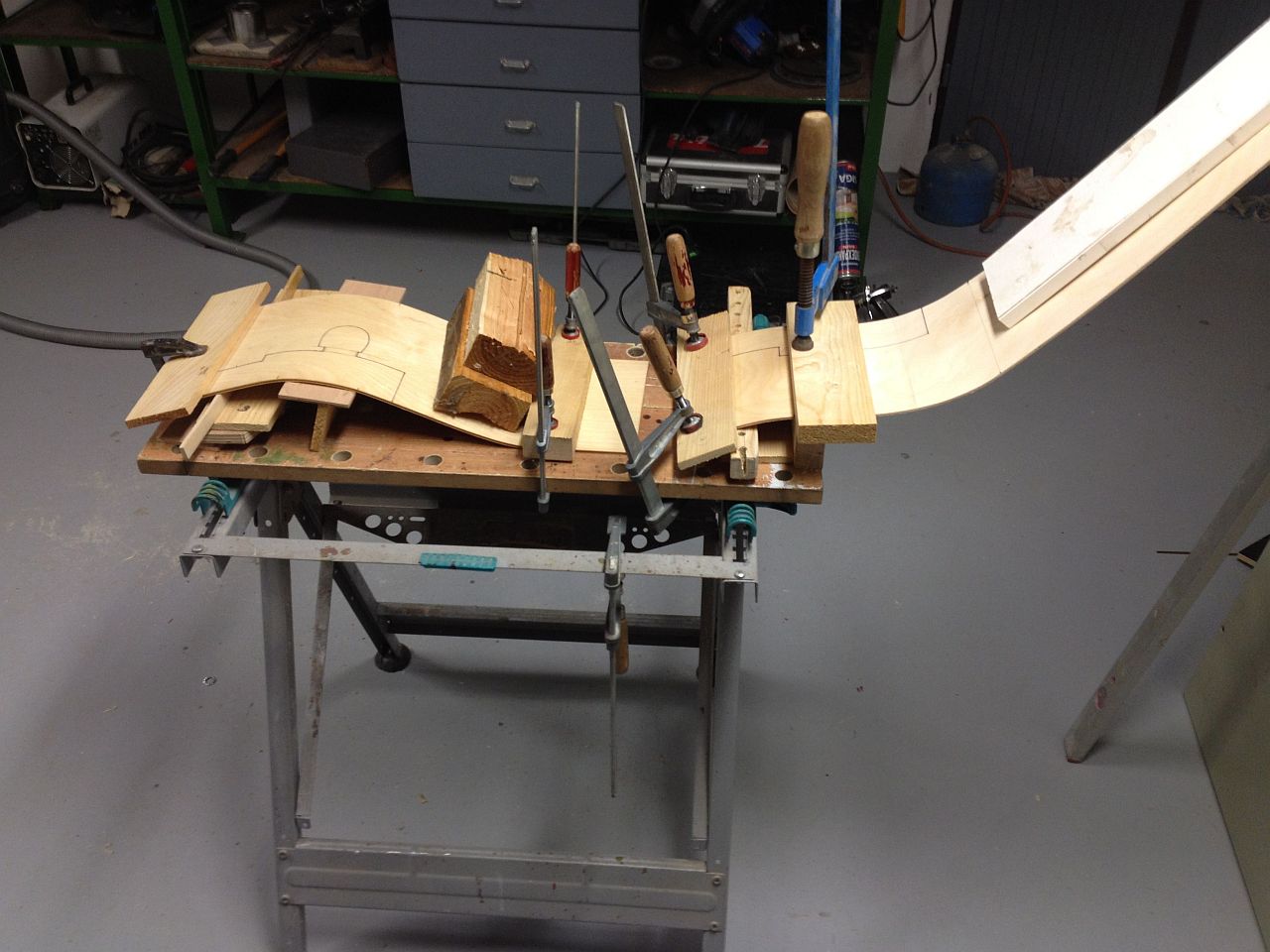 Kulisa je ze čtyřky břízy a stejně i po máčení a schnutí se mi ji nepodařilo vytvarovat dle Milanova návrhu.