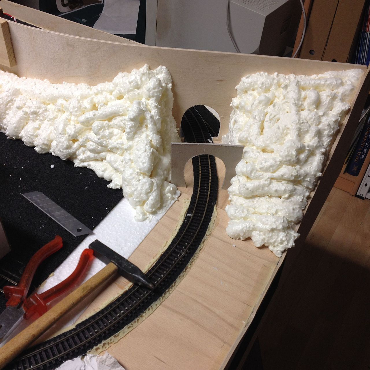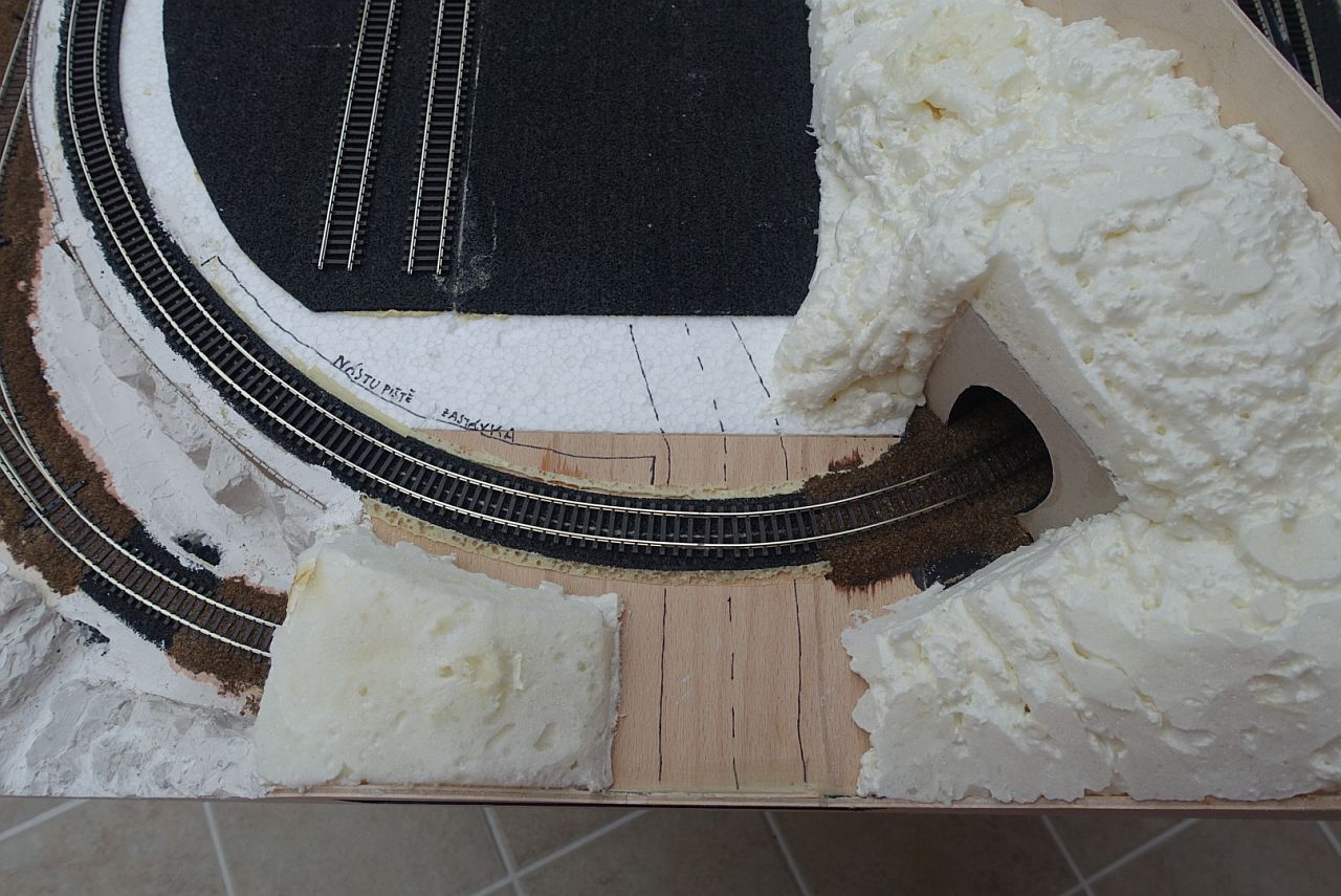 Pak napíšu ještě něco o sádře, ale teď ukážu, jak jsem se pral s kulisou oddělující viditelnou část a zkryté nádraží.