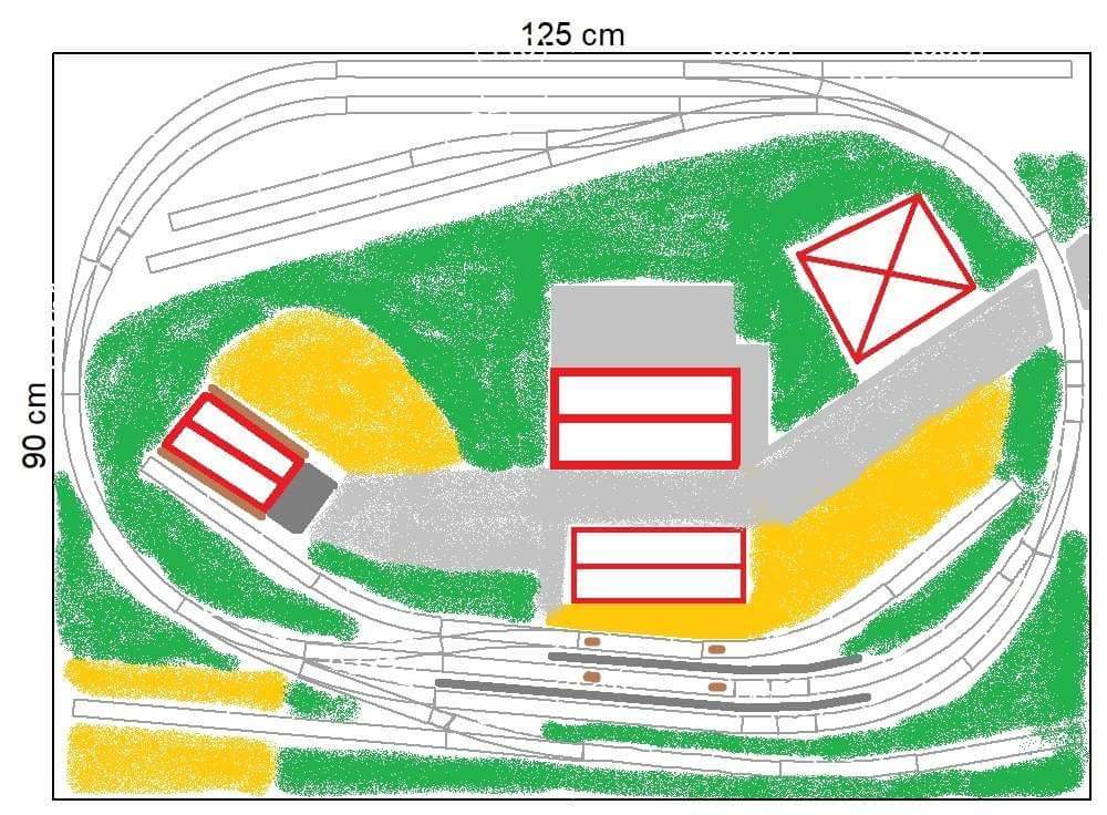 Mě se ta poslední verze líbí. Ještě bych navrhoval dát sklad na tu kolej vpravo od výpravní budovy ( při pohledu na plánek ) a tu kolej vlevo použít jako vlečku. Máš tam hezký plácek pro malou továrničku , stavebniny , kovošrot apod. No a ta vlečka vlevo dole si tím přímo říká o remízu s tím , že popelová jáma a uhlí by byla naproti na výtažné koleji. V případě epochy motorů jen přidat stojan s naftou...