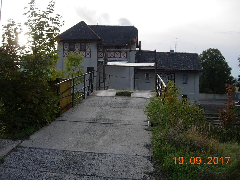 A to třeba v Horní Bříze je ještě jednodušší rampa, jen vyzděná z cihel... A před ní tam byl rotační výklopník na vagonety, tedy úzkorozchodné vagóny... Poslední kaolinová rampa na trati 160 je ve Vroutku, schovaná hned za skladištěm...