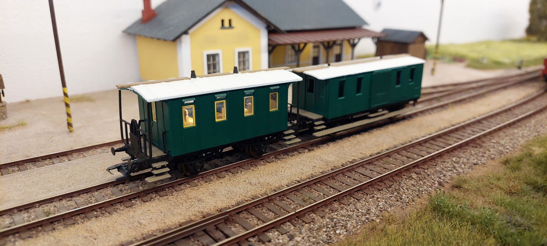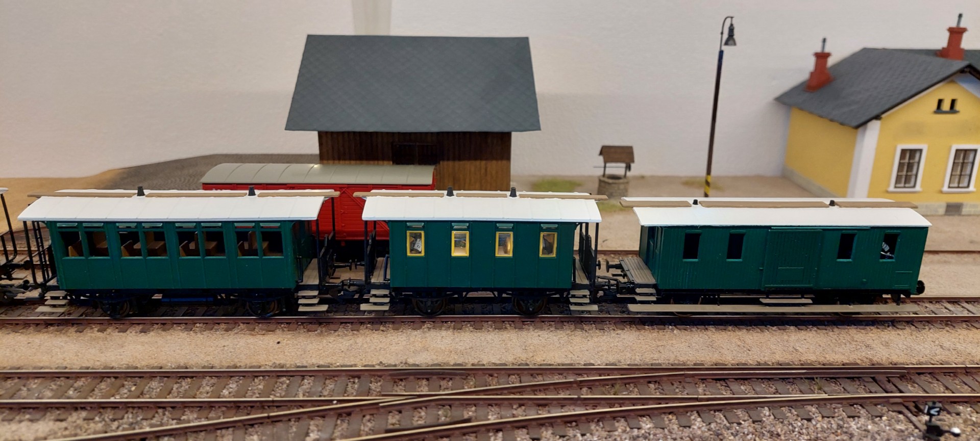 Dráha dostala dva osobní vozy a jeden kombinovaný služební/poštovní. Všechny vozy vyrobené ve Studénce r. 1905 měly rozvor 4,2 m a otevřené plošiny. Staroměstská lokomotiva 97.241 = 310.0127 měla z výroby automatickou sací brzdu vzor 1895, takže její výstrojí byly opatřeny i pojednávané vozy.