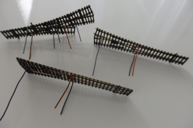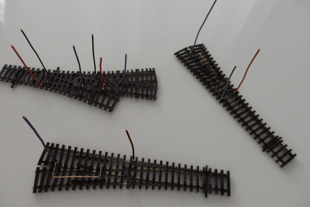 Tak postupne si chystám aj výhybky, na ktoré zo spodnej strany pájkujem kúsky vodičov, priem. 0,5mm2