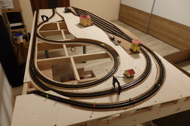 Tak po dvoch týždňoch sa mi podarilo skompletovať a položiť staničné koľaje.