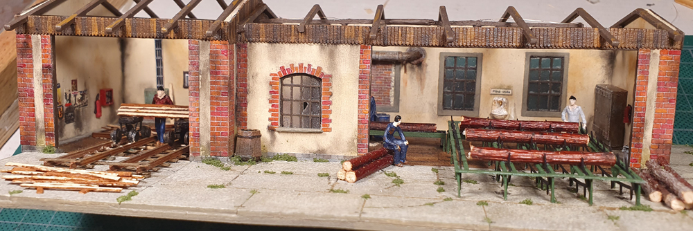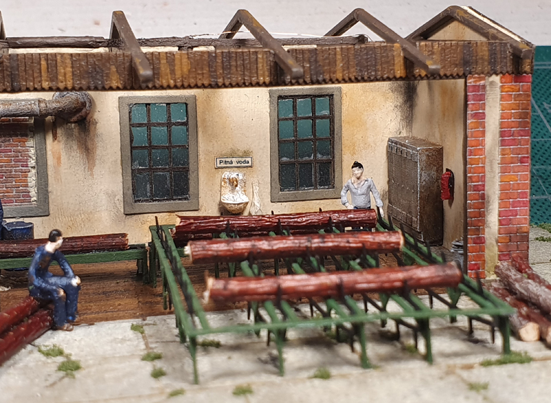Zase jen drobnosti. Pila dostala střechu a zabudoval jsem k ní již dříve zmíněnou zděnou kůlnu. K vekslboudě na středním dílu jsem vysadil větrolam.
