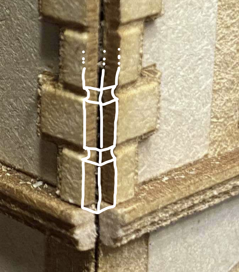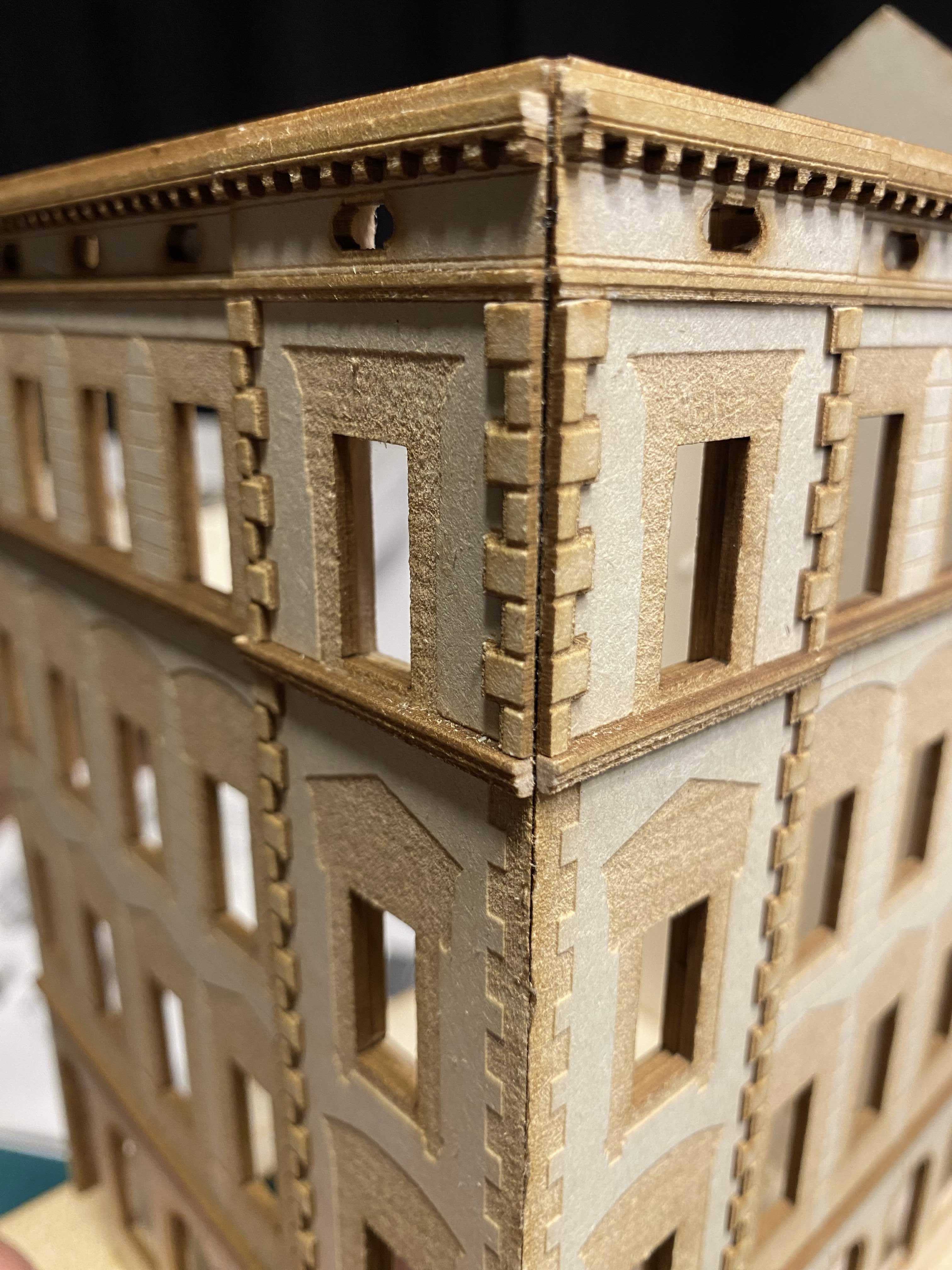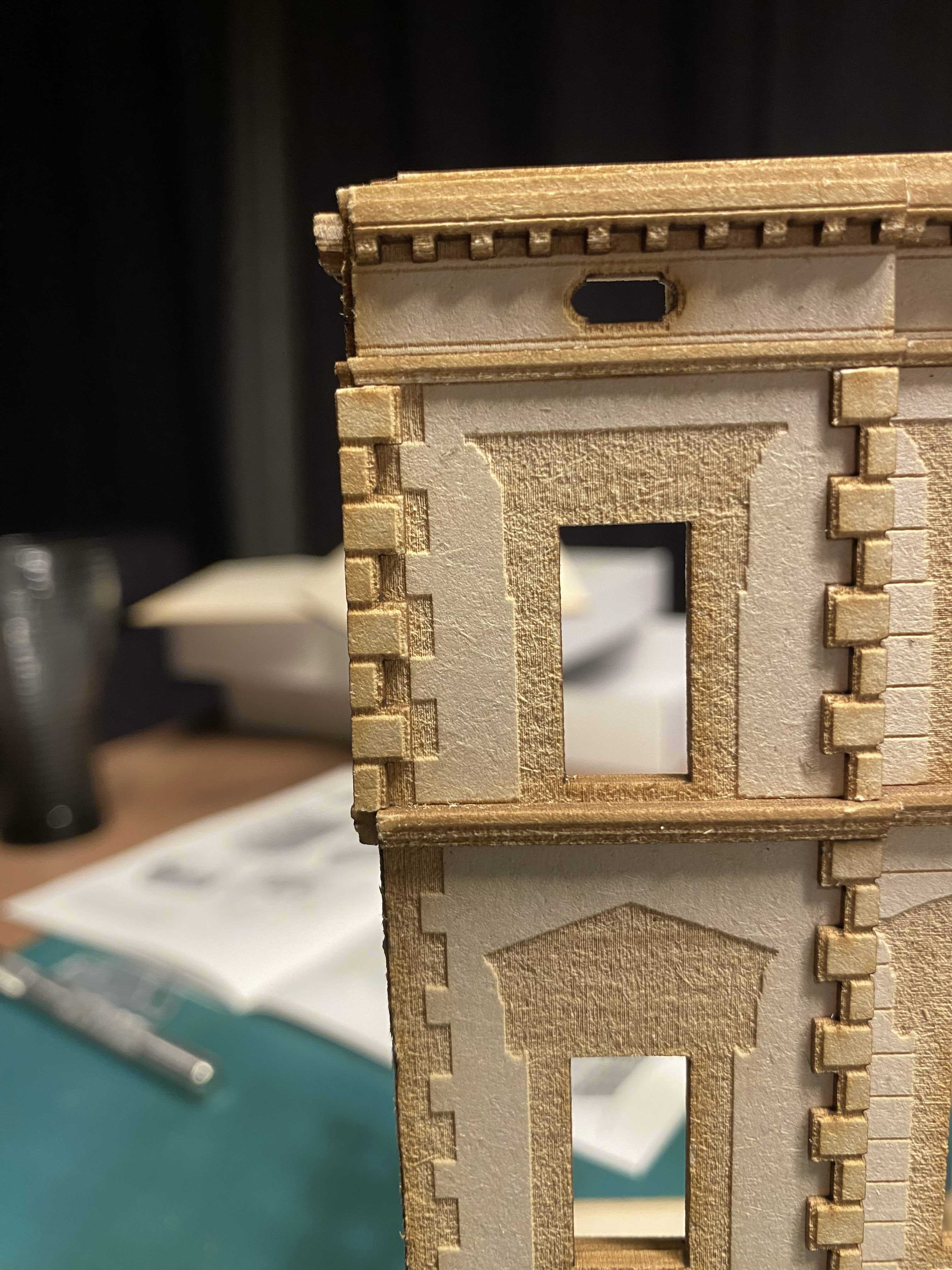 Předpokládám, že ty rohy jsou dolepovací (samostatný díl - díly, jako je vidět na sestavě Bahnhof der kkStB "Berndorf Stadt)? Napadá mně jednu část rohu přesadit přes druhou, aby se vyplnila ta mezera. Sice vznikne viditelný spoj, ale ten se už dá lépe zatmelit, nebo se přesah udělá tak, aby byl spoj na méně viditelné straně? Na jedné straně vyjdou tím pádem kameny užší, ale to by se snad ztratilo? Třeba takový břečťan