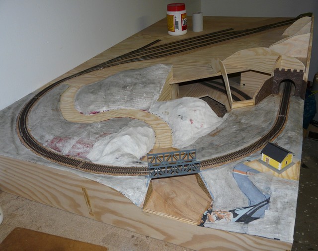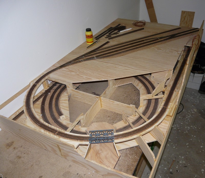 Tak už jsem se vydrápal až na kopec... vjezdové zhlaví je nalepeno, zbytek nádraží napasován a zbývá nalepit koncové zhlaví. Pokud se nepřihodí nic nečekaného může vánoční vlak přijet na čas... :D