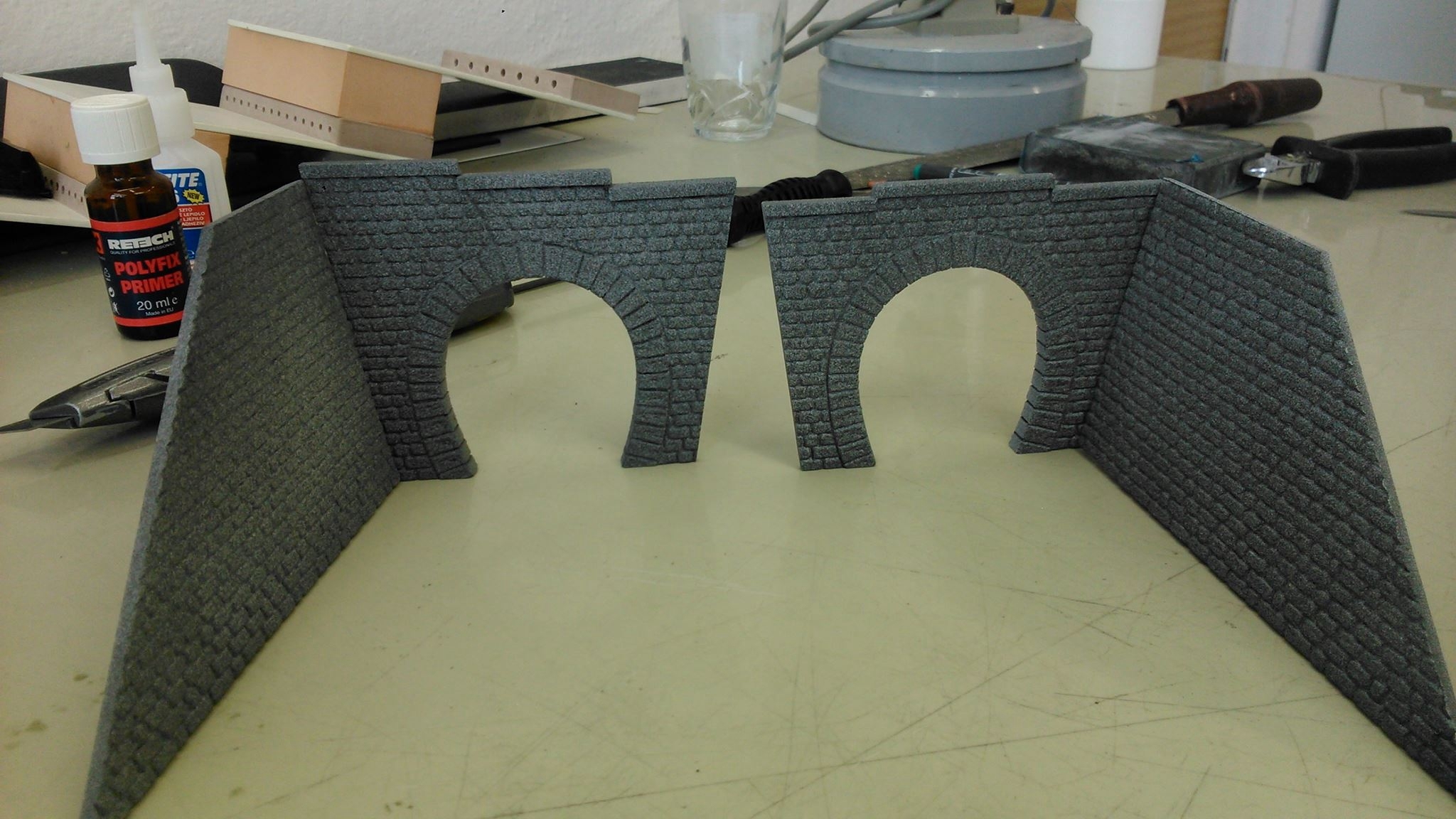 Dá se to použít ke klonování toho auhagenu. Kolega co stavěl tento most desku od auhagenu otiskl do teto hmoty. Až to vytvrdlo tak do takto vzniklé formy zase otiskl toto hmotu, pak tim olepil ten most. Pak samozřejmě povrchovka - každý šutr extra. Je to sice v H0, ale předpokladám, že tunelové portály dělá auhagen pro TT extra a ne žádnej obojživelnílk, takže šutry by měly být velikostí OK.