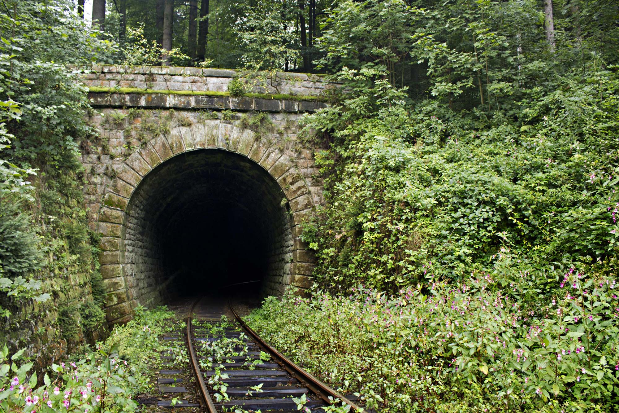 Ne bude v severozápadním rohu podle výkresu. Dole bude vratná smyčka a skryté nádraží a o 350 mm výše povede trať na "Tyníště" Horní trať bude chycená ke zdi (poličková) Dolní trať bude na desce, ta bude úplně samostaná a v případě potřeby by měla jít posunout ode zdi a získat přístup zezadu. Krajiny by měla být koncipována jako údolí, z rohu šikmo poteče řeka směrem do místnosti. Vratná smyčka překlene řeku dvakrát po nízkých mostech a horní trať povede přes tento vysoký obloukový. Pilíře jsem tam nechtěl proto, aby ta horní trať byla nezávislá na spodku a s tím bylo možné v případě potřeby pohnout. Krom toho by ten obloukový měl být hlavní dominantou tohoto segmentu. To údolí bude do místnosti otevřené, takže tam bude severní svah a jižní stěna zdegeneruje pouze na skalní ostroh, který bude tvořit jednu stranu mostu. Dole v údolí by měla vést trať (vratná smyčka), potom řeka a za ní lesní cesta vedoucí k trampské osadě viz. fotka na minulé straně. Ta vratná smyčka se vyloupne z tunelu a tam bych rád využil prvky z tunelů trati Dodleby - Rokytnice. Jsou tam tunely dva, oba trochu raritní, u delšího Pěčínského byla na opěrné zdi umístěna pamětní deska při dokončení tisíci kilometru tratí finacovaných z prostředků českého místodržitelství. Druhý Pekelský tunel má zase zajímavý portál, který je trochu předsunutý a za ním vede cesta a pak teprve začíná svah. Takže portál slouží zárovaň jako nadjezd.
