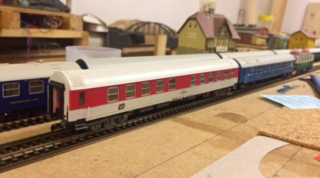 Celkem mi vadí, že moc nejsou k dispozici do souprav hospody. Tak jsem jednu začal tvořit v tomto červenobílém provedení. Po hodně letech jsem se pustil do nějakého vozu. :)