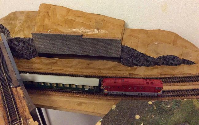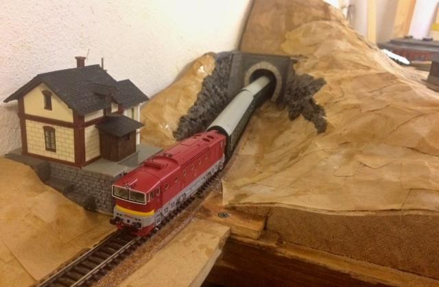 Nahruho jsem vytvořil terén u strážního domku "Kleny" IgraModel a zářez k tunelu. Strážní domek je sestaven jinak a doplněn, než je stavebnice. Mám takovou snahu, aby na jednotlivých tratích byly podobné stavby. Nakonec jsem se u strážního domku rozhodl jiným způsobem využít spodní část do svahu, než jsem původně myslel a nepočítal s ní. Terén si o to trochu řekl. Domek je také nedodělán, protože jsem potřeboval okolo terén, abych se rozhodl pro konečnou úpravu jeho provedení.