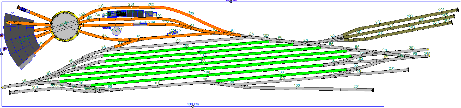 Ahoj, já Vám to tu trochu rozvrátím. :D Ve výjimečných případech byla rotunda větší, než bylo potřeba, třeba Žatec. Já bych to depo nedělal, tak rozsáhlé (kolejově) - buď rotundu, nebo obdélníkovou remízu (alespoň 50-60 cm dlouhou v H0). Taky to celé pořádně nevyužiješ. Nevím, jak to máš v plánku dlouhé, ale popelovka a zauhlování by ti mělo zabrat asi metr (v H0 a to nemáš). Předobrazem ti můžou být třeba tahle depa: Klatovy, Letohrad, Meziměstí, Hanušovice, Karlovy Vary dolní, Žatec, Jaroměř, Veselí n. L… Pro tvoje vybrané období by mělo být už zauhlovaní (výtah apod.) zrušené a místo toho bude nafta. Zauhlování se přesunulo do bývalých rezervních skládek, kde se zauhluje Kirowem. Pokud chceš mít depo hlavně „kochací“ se z mašin, tak ti stačí udělat sluníčko - točnu dáš do středu a okolo uděláš co nejvíce paprsků. V období silného parního provozu by bylo mezi paprsky samé uhlí. Vlastní kolejiště depa bych udělal tak na 4 průběžné koleje. První, vlastně ještě mimo depo na odstavování přebytečných a zbytečných vleků k M152.0 (vhodné období), druhá odstavná, třetí na zbrojení a čtvrtá zásobovací a šmitec! Stačí se podívat třeba na to Veselí…