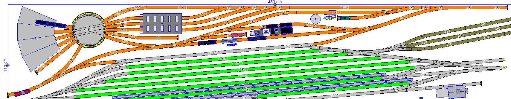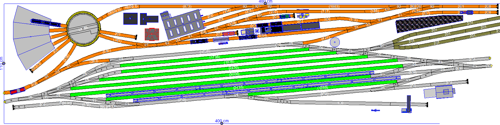 Jinak nevím, jak moc je poloha nádraží na panelu pevně dána, ale pokud by se vše posunulo kousek do prava, tak by zůstalo víc místa kolem točny a rotundy a i to napojení těch obslužných kolejí k točně by mohlo být o větším poloměru, což by vypadalo lépe i proto, že pohled na zlomenou páru není moc pěkný.