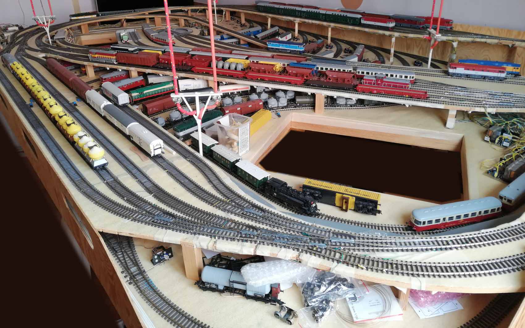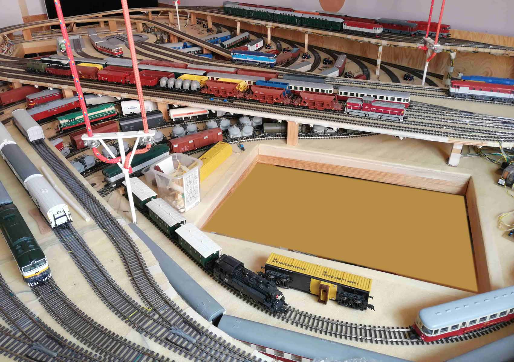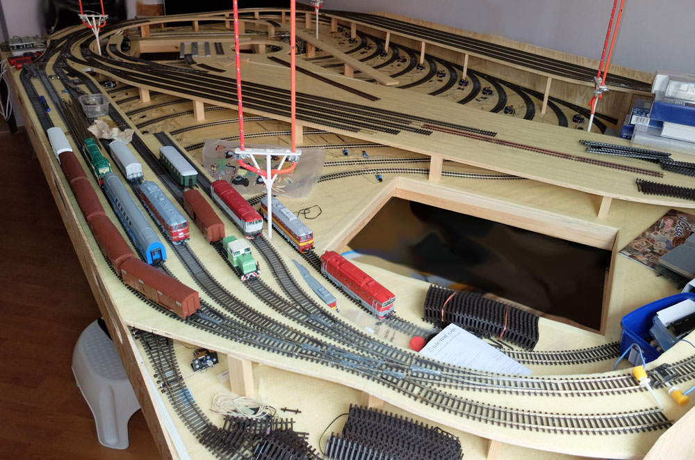 Vlákno o viditelných skrytých nádražích viewtopic.php?f=11&t=13985 , je jako o mém kolejišti. U mě celý spodek by měl být neviditelný, s 15 kolejemi, a ještě 4 koleje nahoře vzadu, by také neměly být vidět. Ale asi k tomu nedojde. Pro domácí ježdění, je dobré vidět všude. Rád bych aspoň zaštěrkoval to co má být viděno. A ještě před tím dosadit návěstidla.
