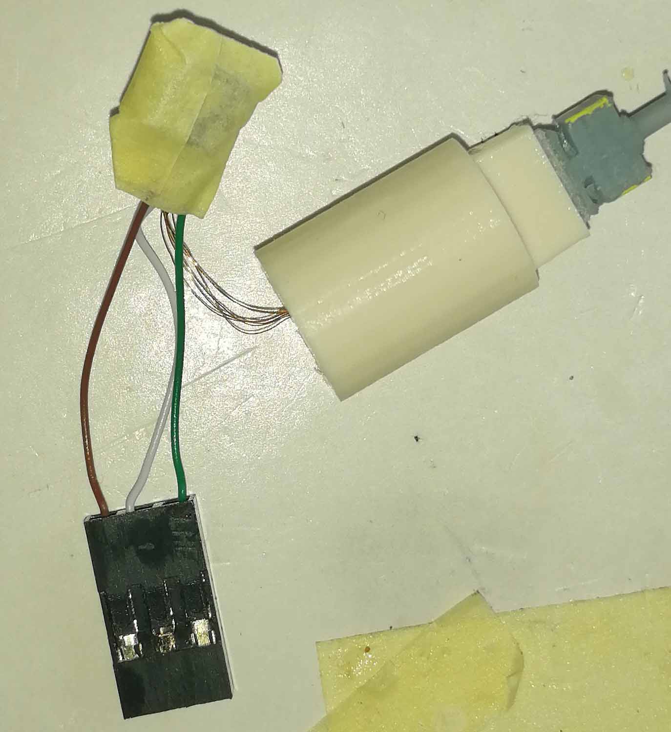 Přilepím konektor a zabalený dekodér s drátky opatrně nacpu vedle něho.