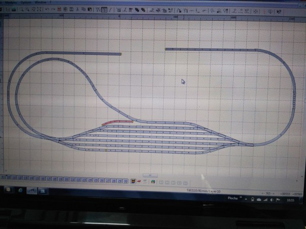 Tak po několika dnech další krůček. Ač se předchozí fotky moc neliší, nyní jsou definitivně nastaveny výšky kolejových tras a roviny základních desek. Hodně jsem přemýšlel o přesunutí smyček do úrovně SN, ale přišel bych tak dole o jeho dvě koleje. Zachoval jsem proto plán viz kolega Trixt a do podzemí SN klesají dvě koleje původního Trixtova skryťáku. SN u přední hrany kolejiště bude mít sedm kolejí rozvětvených výhybkami Kuehn 20°, využil jsem studii kolegů z Brněnských modulovek. Nejdelší kolej bude mít do hranic 123 cm, nejkratší 84 cm. Oblouky před SN mají poloměr 330 mm, vzdálenější 353. Jinak se mi podařilo dostat zhlaví pravé smyčky o 5 mm níže a klesání do SN z této koleje bude 3,6% max. Deska SN je posouvatelná v podélném směru, abych se dostal k servisování obou zhlaví odbočné stanice nad ním.
