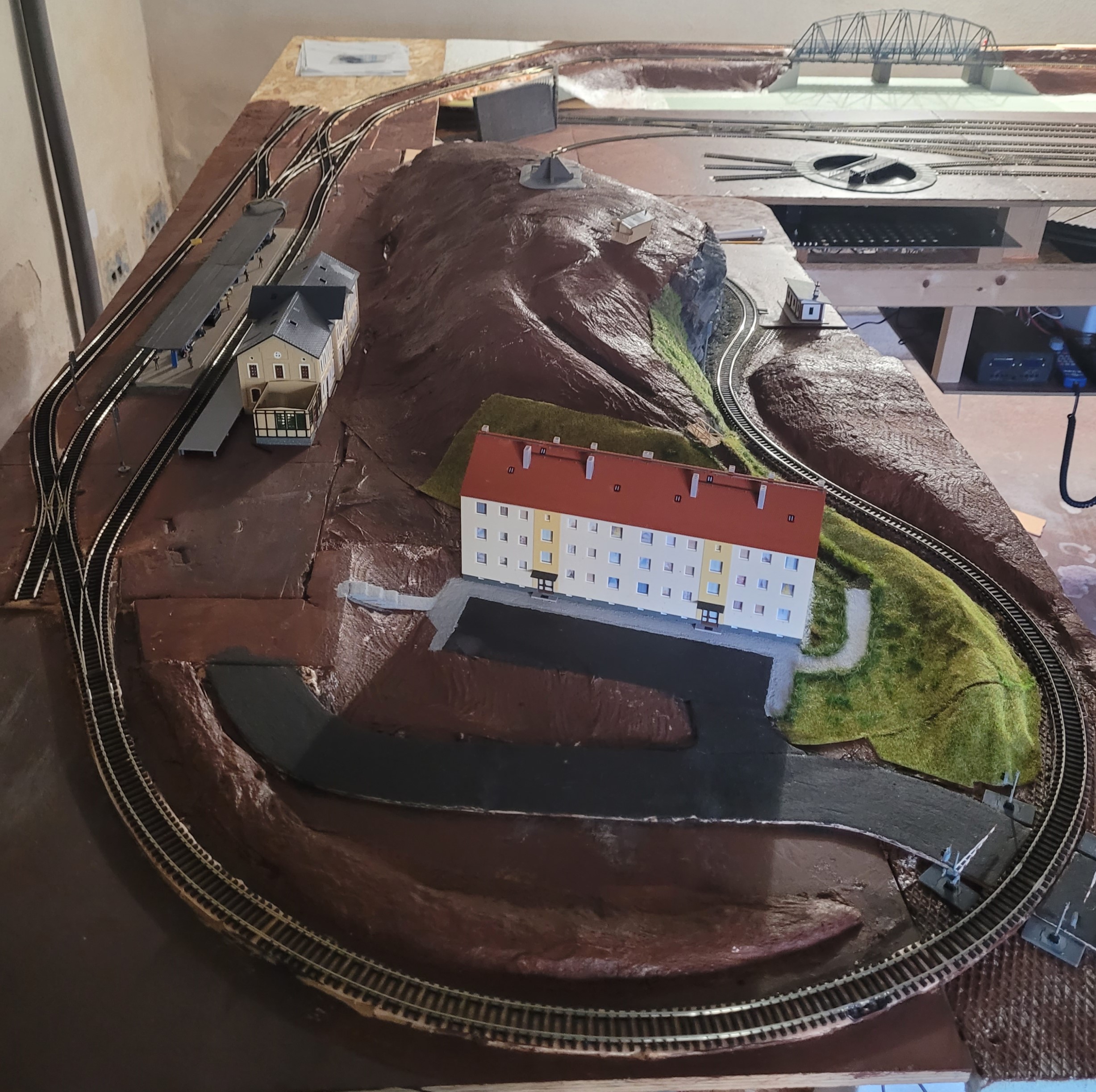 Ale no tak, Milane, přece by jsi se nečertil. Neřekl jsem, že je to špatně. Může se to šikovně od stanice oddělit plotem (Bezdružické lokálky, Bukovice) nebo to nechat i připlácnuté ke stanici (Čeladná, Spořinka, Doupovské dráhy, Dlouhá Seč). A to, že s tím mám problém, je možná ten, že na svém kolejišti jsem potřeboval někam umístit programovací kolej. A vyšla z toho právě takováto souběžná kolej. Abych ji oddělil od stanice, tak na to není místo. A tak nevím, co s tím. Ale to sem nepatří. Víc bych to tu majiteli neplevelil.