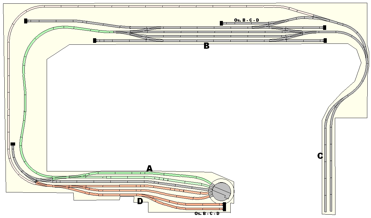 sidlo píše:Vím že se to už probíralo. Přesto bych zadní kolej obětoval a v A-D místo točny udělal smyčku. Takto to vypadá jako dlouhý inglenook.