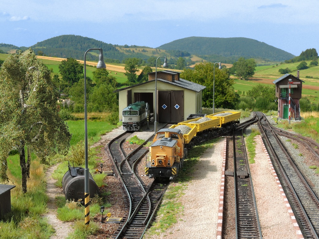 Rovinu si škrtni, celá půda letí o 10 cm úhlopříčně a srovnat to nepůjde. Půdu navíc přetínají dva vazné trámy - jeden u vstupu, je vidět na náčrtku levé strany, druhý vede napříč před štítem, tedy pod středovou částí kolejiště.