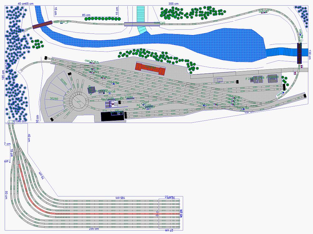 Od původního návrhu se plán v několika věcech liší (chybí např. odbočení vlečky ze širé tratě). Zkoušel jsem to tam poskládat, ale nějak se mi to nedařilo. Třeba přijde někdo jiný s návrhem, jak to udělat líp - budu povděčen za případné připomínky.