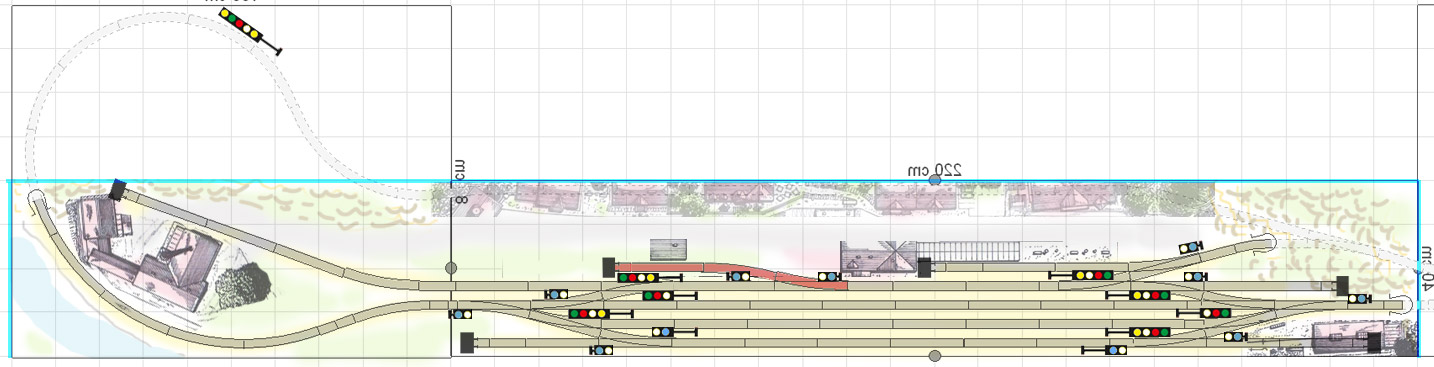 * jde mi hlavně o zvýrazněnou kolej ke skladišti, kterou jsem si do návrhu přidal, abych si obohatil posun ve stanici. No a jde mi o to, že kolej není moc dlouhá, a proto se mi ji moc nechce porcovat velkým návěstidlem - raději bych tam nechal jen toho trpajzlíka, kterej by povolil vjezd ke skladišti... Vlak bude jinak běžně stát přes tuhle výhybku a jedná se o dopravní kolej. Jde to takhle zjednodušeně :?: