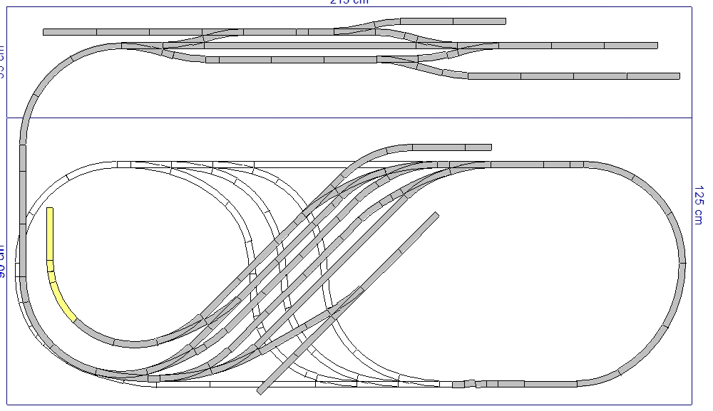 Jiri Dvoracek píše:Jak rikam, nemel jsem moc casu a popravde mne toho moc nenapadlo, pokud jsem chtel zachovat nadrazi v Tve podobe. Klasika, dve spiraly v rohu a kazda zakoncena SN se smyckou. Lokalku si muzes udelat jak chces. Hodit si tam nekde nejakou vlecku, zvetsit vyhybny a koncovou stanici. Tohle bylo jenom na rychlo splacane.Nebo si tam hodit reku a tak. S krajinou jsem se moc nezabyval, mozna vecer.