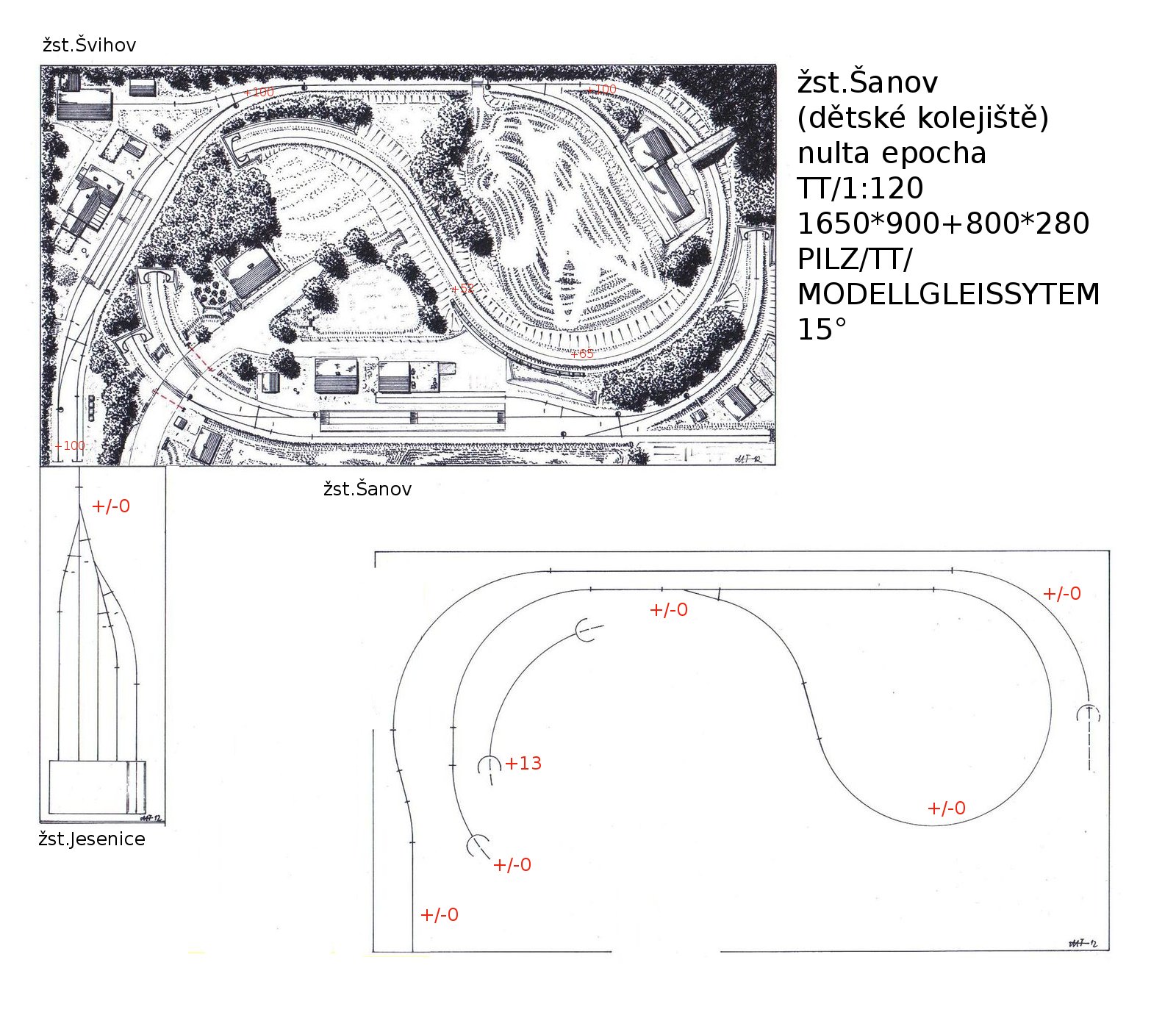 Edit: Ještě jsem dal do přílohy kolejiště Milana - "žst. Šanov", které ukazuje dvě věci - jak strašně jednoduchá může být odbočná stanice, a že skryté nádraží můžeš mít klidně mimo hlavní panel. I když si tisíckrát říkáš, že SN rozhodně nechceš ... stejně ti poradím, radši s ním počítej. Dá se teď vyřešit jednou výhybkou v tunelu, ze které povede trať mimo panel. A je lepší ji tam mít (nebo s ní aspoň počítat), než nemít, a pak překopávat půl kolejiště.