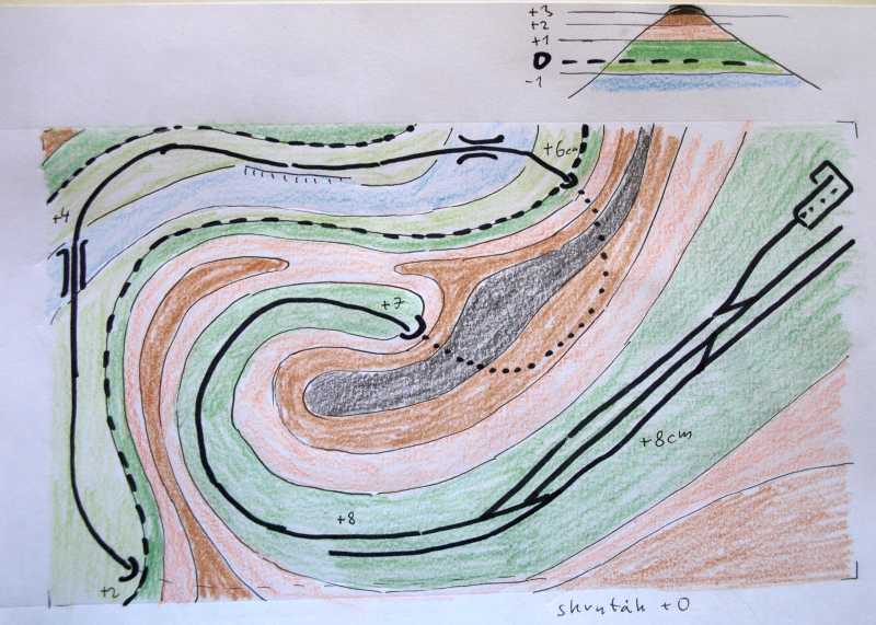 tady ještě pro lepší názornost trochu jinak nakreslený návrh vrstevnic (nejsou nikjak výškově definované i když jsou očíslované)