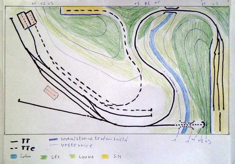 b) pořád se nechci vzdát představy, že trať bude v celé trase vedena v rovině;