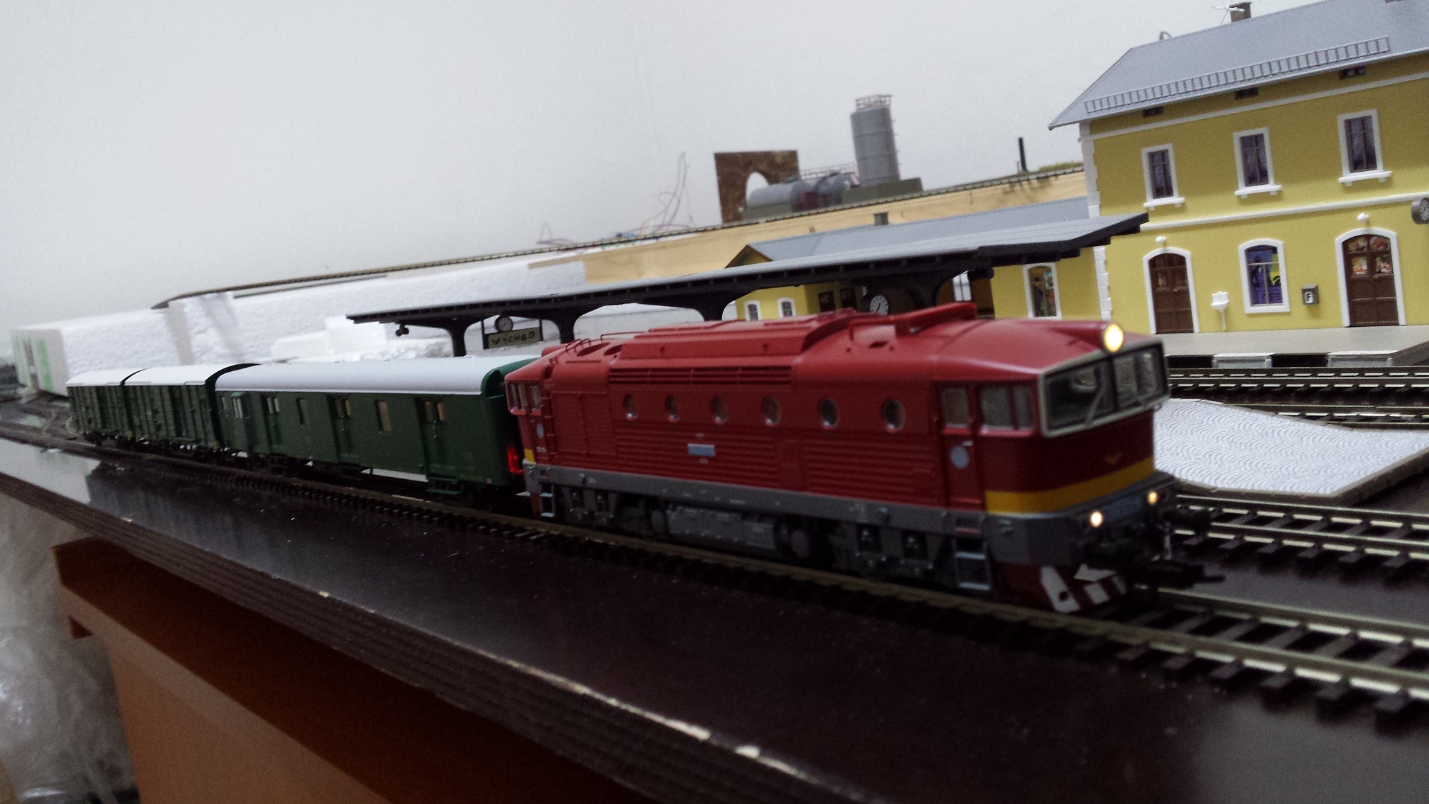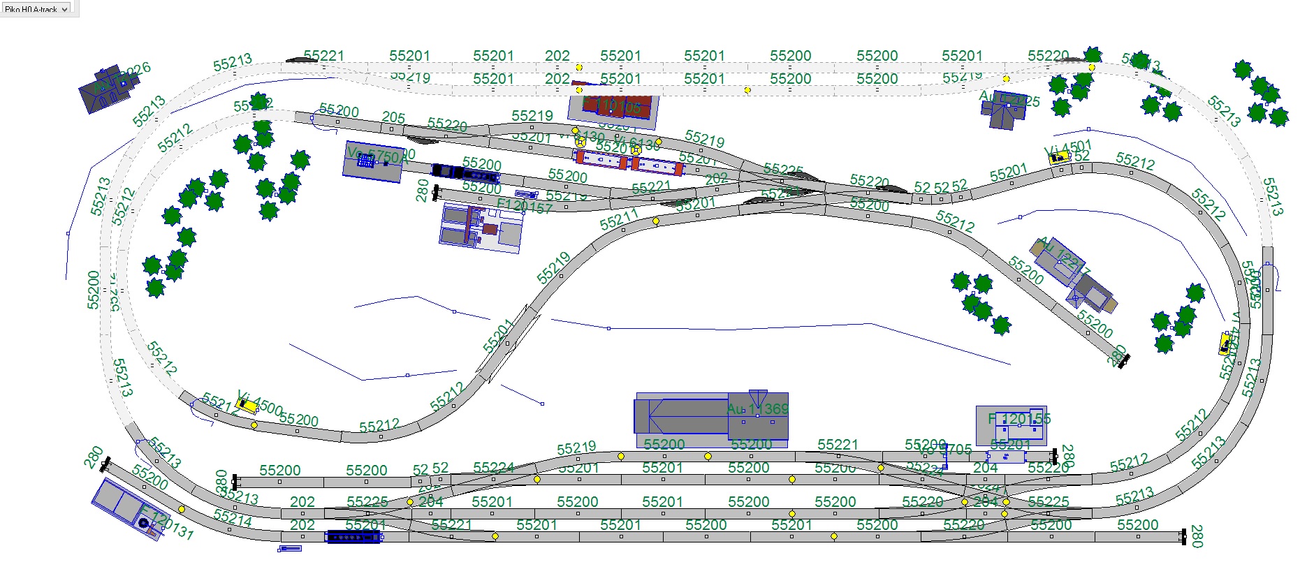 No, ono je to docela těžké na tomhle rozměru... Vjezdová návěstidla nejsou semafory na křižovatce a proto nestojí hned u krajní výhybky. Takže vjezdová na "hlavní trati" (ta se skryťákem) by stála až "za tunelem". Tudíž je možné je vynechat. No a vjezdové návěstidlo z vedlejší tratě by stálo prakticky až v horní stanici. Když si odpustím přepočet 100 metrů/87 = 1,15 metru a budu trochu střízlivější vzhledem k rozměrům kolejiště, vychází vjezdové návěstidlo do spodní stanice tak někam na úroveň pravého tunelového portálu. A někde zhruba v jeho úrovni by bylo i vjezdové návěstidlo do horní stanice.