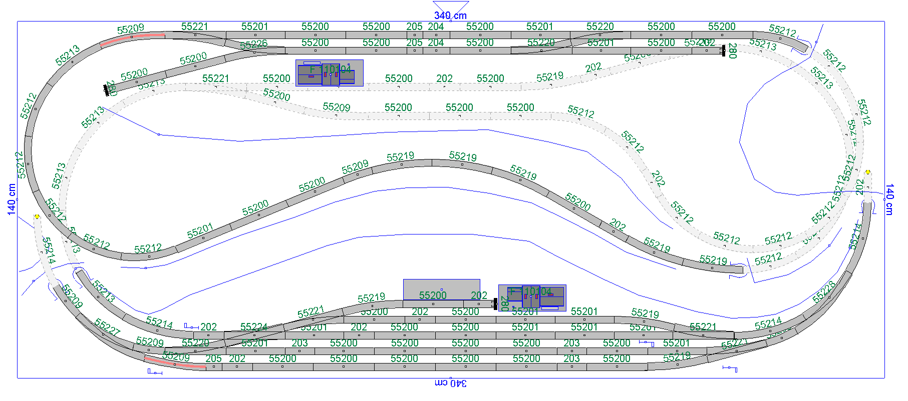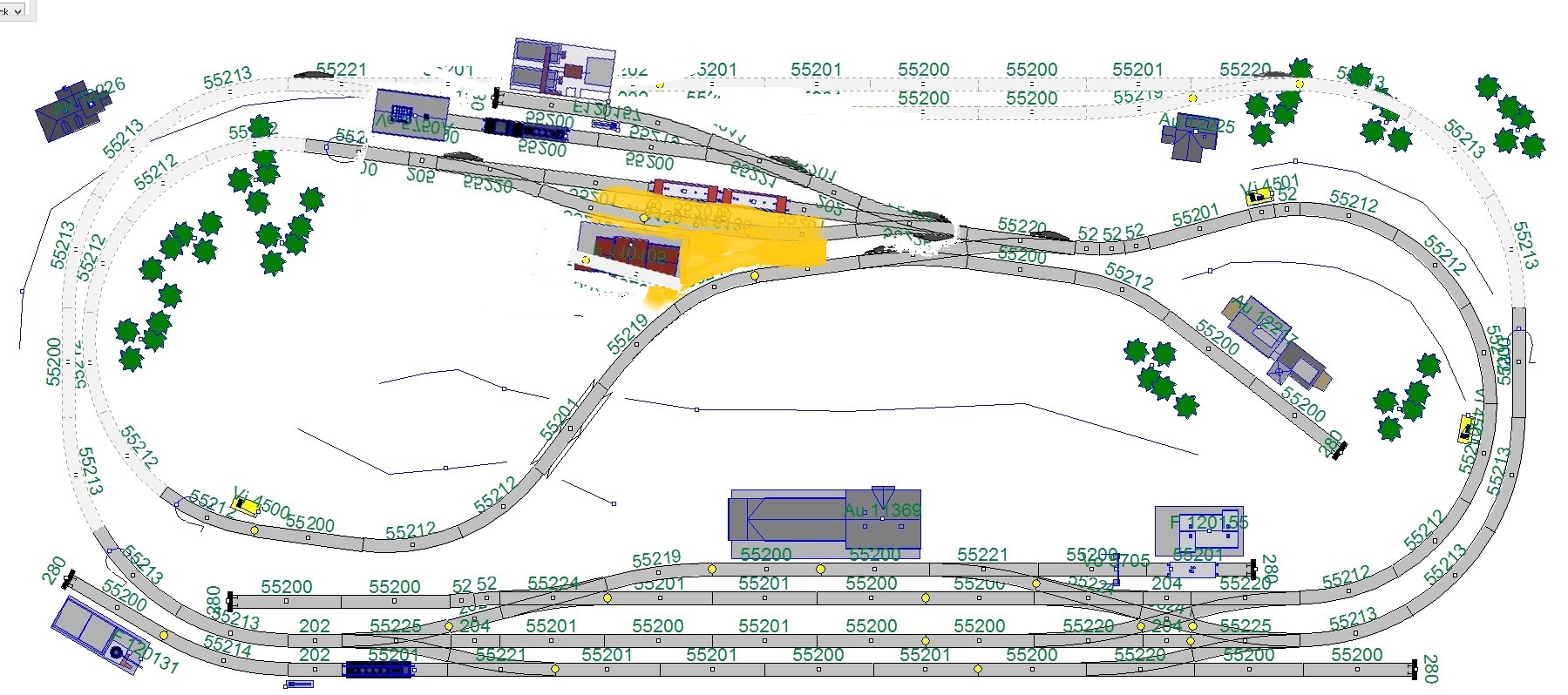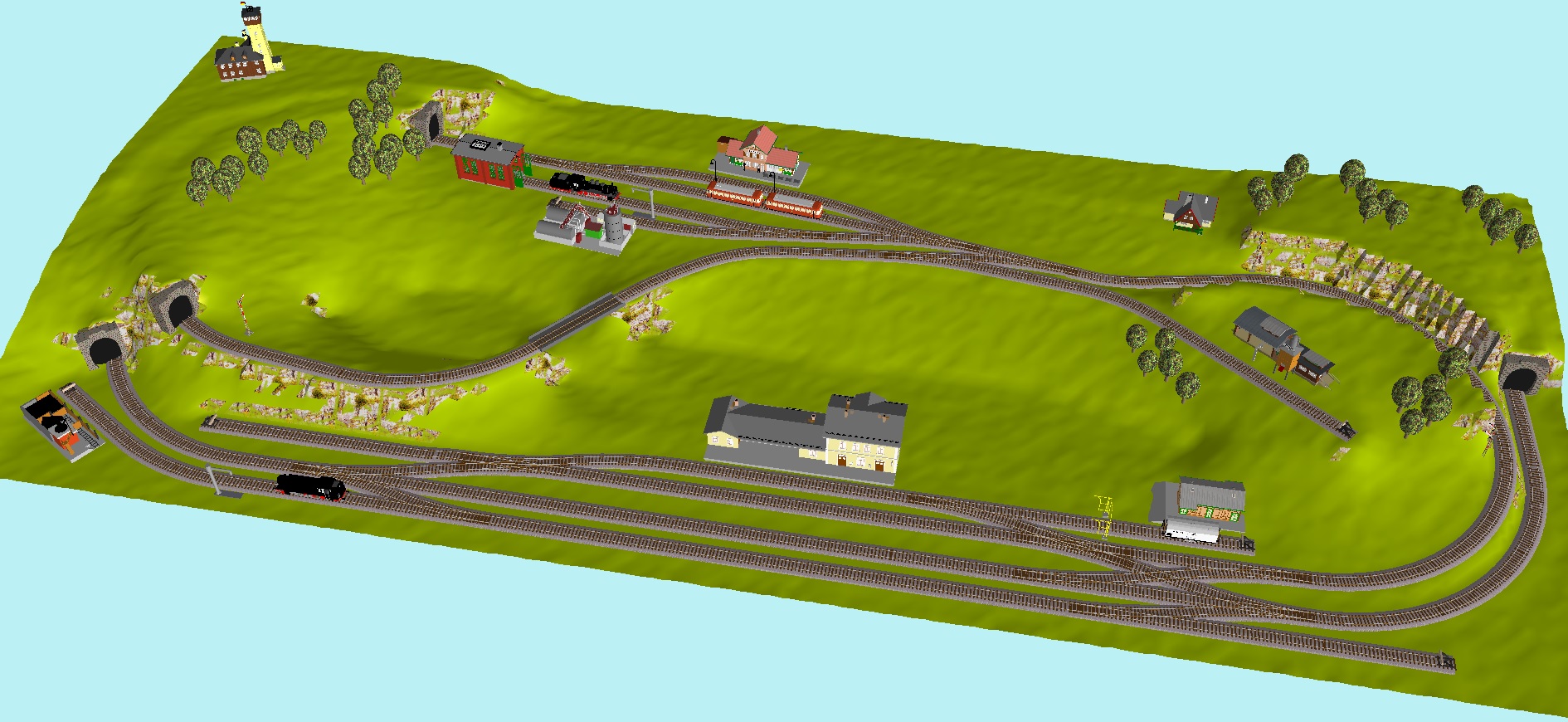Pokud by to mělo aspoň trochu odpovídat realitě, musela by návěstidla být vzájemně závislá, kdy každé je předvěstí následujícího, protože na předvěsti tu fakt není místo. Ale to by ve spodní stanici musela být na pravém zhlaví minimálně třísvětlová odjezdová návěstidla (žlutá-zelená-červená) vázaná na vjezdové návěstidlo horní stanice. Vjezdové návěstidlo z vedlejší tratě by vzhledem k absenci odjezdových návěstidel v horní stanici mělo u výhybky odbočky aspoň tabulku s křížem a dovolená traťová rychlost by byla někde kolem 30-40 km/h...