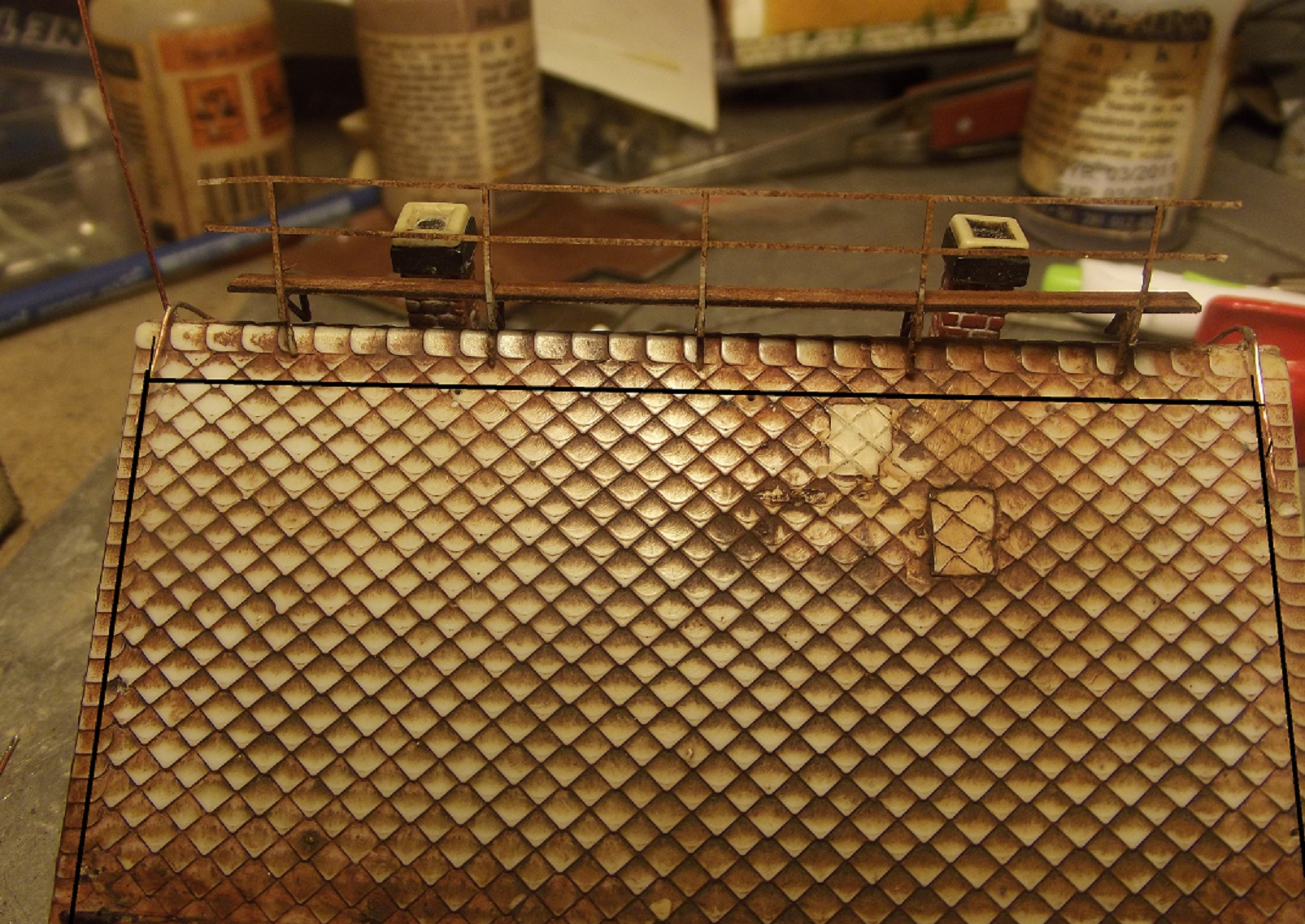 A jen takový detail, nevím od které doby je dole u země drát kryt rovnoramenným el profilem odhad 40x40 až 50x50 natočeným hrotem ode zdi do výše asi 150 až 180 cm. Nad ním byla spojka, aby se nechal hromosvod odpojit a změřit zemní odpor.