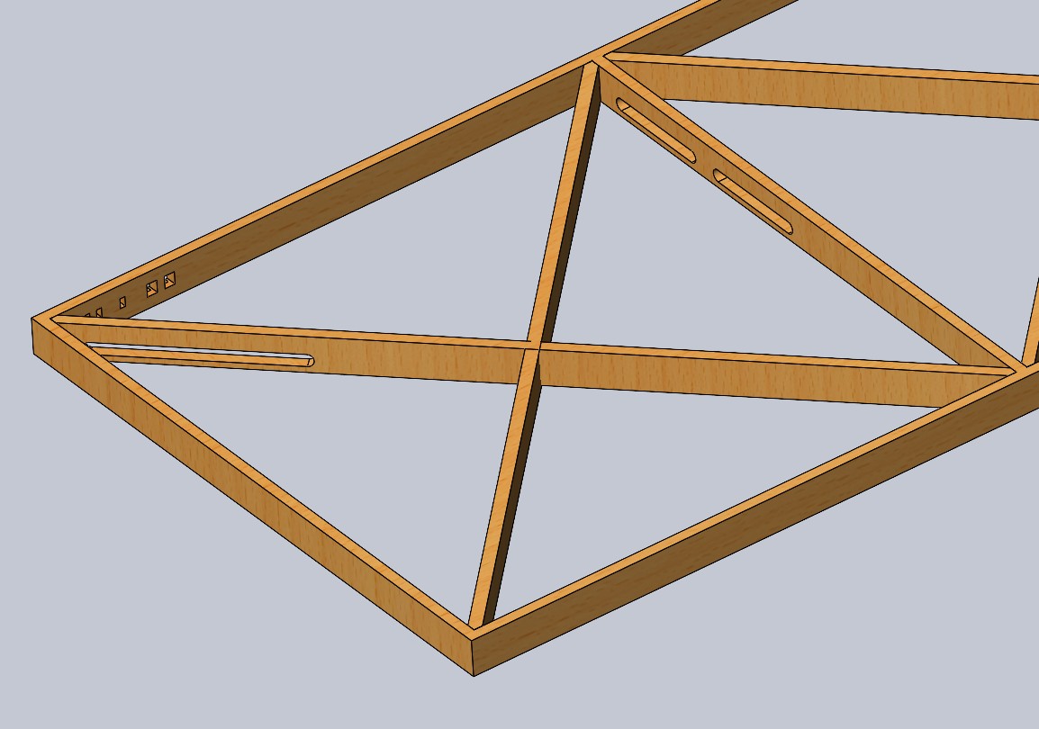 Drobný posun ve stavbě kolejiště nastal tento týden a dnes jsem dodělal novou základní desku. Postupně jsem dospěl k tomu, že to kroucení panelu by pro budoucí použití nebylo vhodné, stejně tak jako bylo špatné rozhodnutí lepit na původní panel 2 vrstvy slabší překližky. Toto všechno, po jízdních testech a rozpojování a vykolejování vagónů vedlo k tomu, že jsem ze zbytků po stavbě prvního rámu postavil zcela nový. Inspiraci jsem vzal na stránkách Lokopina, tak jak mi na začátku radil (a já na to nedbal). Důkladně jsem si jeho stránky přečetl a podle jeho návodu jsem udělal nový rám. A ano, má diagonální vzpěry a ano, je tuhý jak beton. Přesně jak píše Lokopin. Takže sice to bude vyžadovat trochu víc práce, ale věřím tomu, že to za to úsilí bude stát. Taktéž jsem místo lepené desky ze slabších koupil rovnou topolovku síly 8mm a tu tam přilepil. A už i před tím byl panel podstatně festovější než ten minulý. A jako malý "bonus" navíc je tento panel o 1kg lehčí než původní a to má silnější základní desku. Takže samá pozitiva.